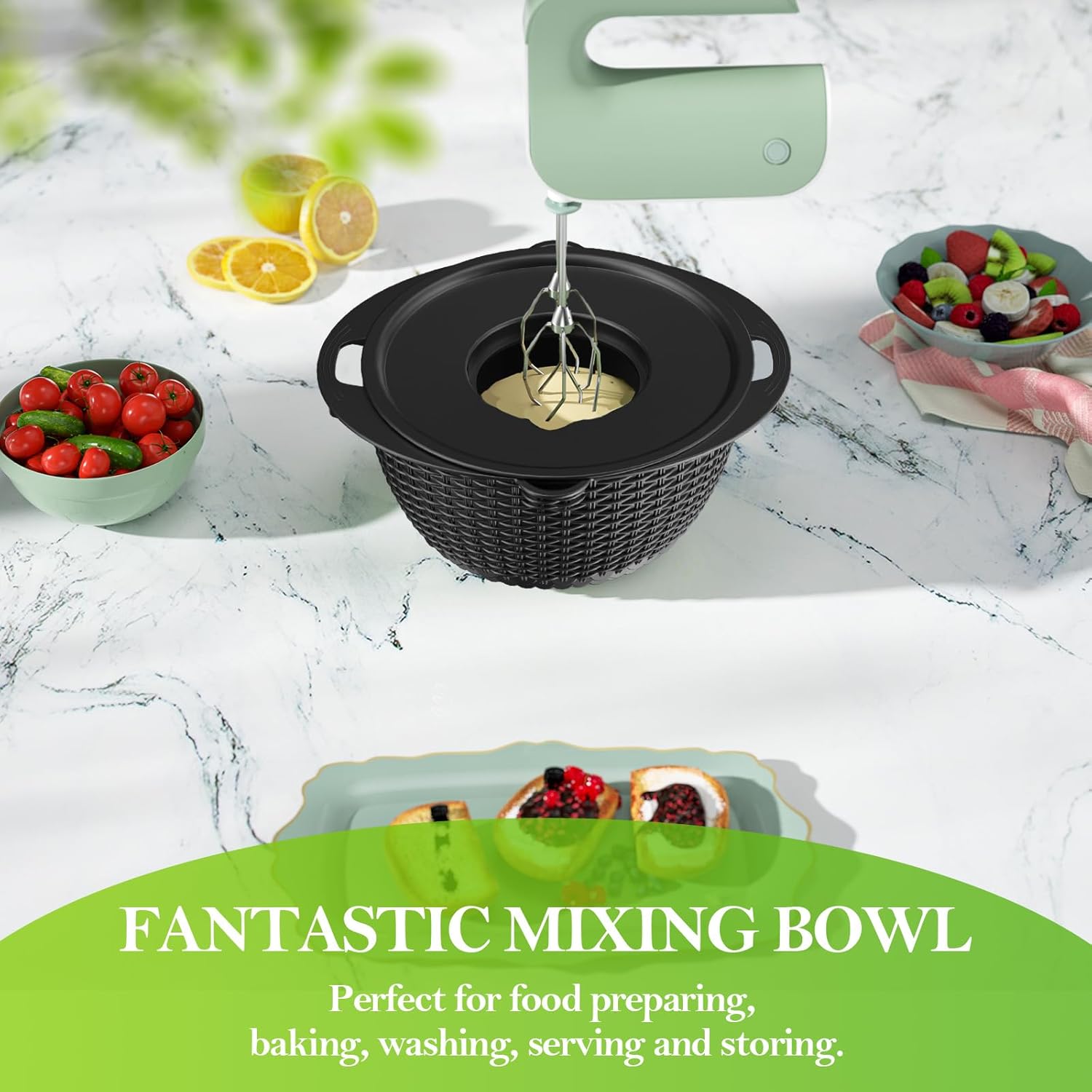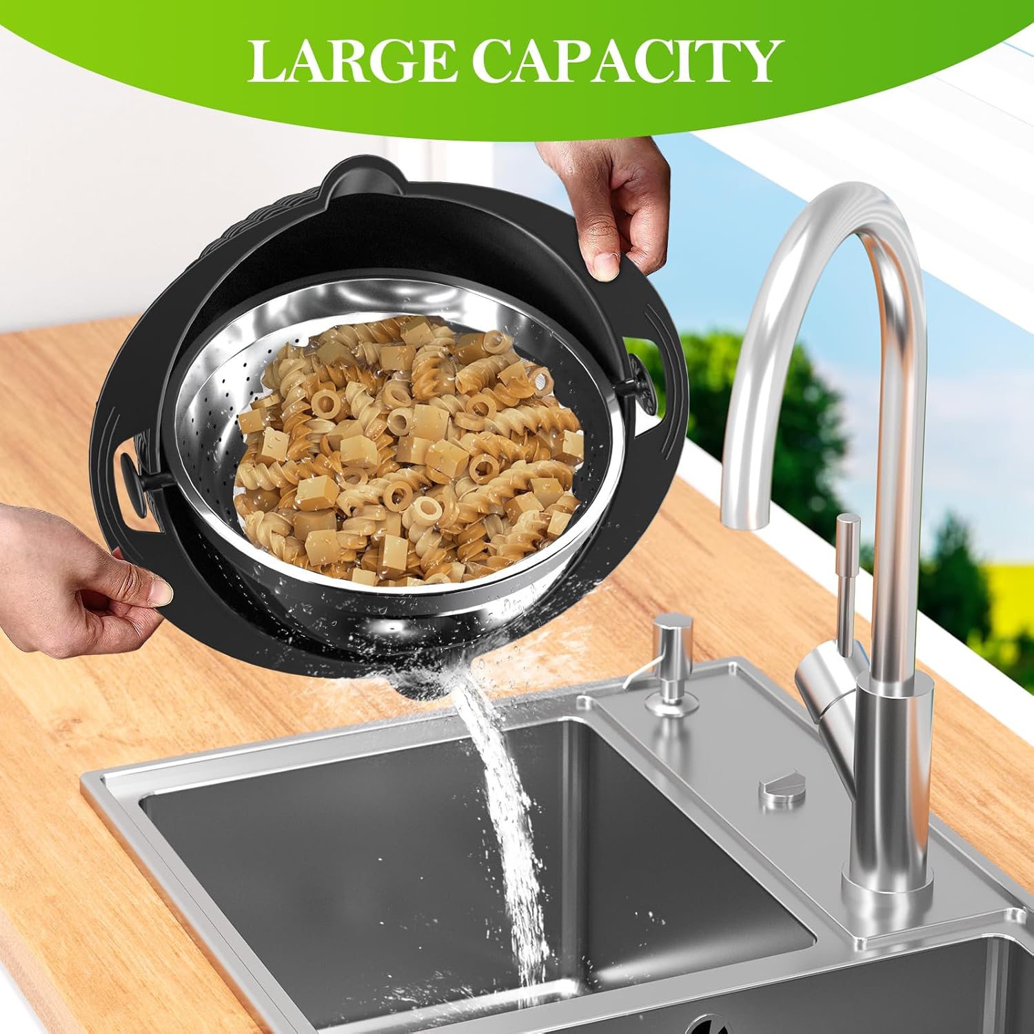 4-1 Colander with Bowl Set - Colander for Kitchen - Strainers and Colanders - Pasta Strainer - Funny Presents for Women - Rice Strainer Fruit Cleaner Veggie Wash Kitchen Gadgets Essentials, Black