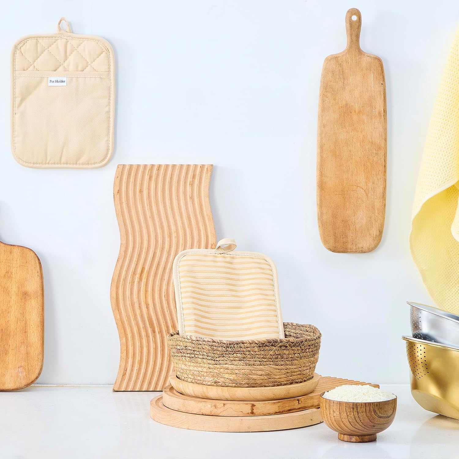 - Machine wash and lay flat to dry, they are available in a variety of colors to coordinate with any kitchen decor.
