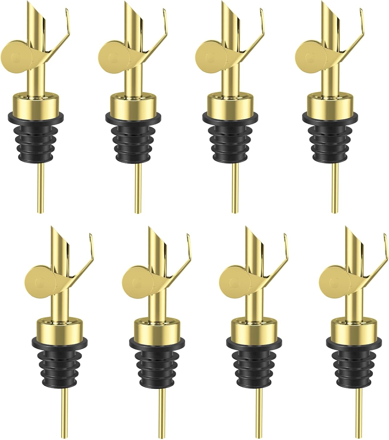 Olive Oil Dispenser Spout, Weighted Liquor Pour Spout, Syrup Dispenser Spout, Stainless Steel Automatic Pour Spouts for Liquor Bottles, Oil Bottles, Vinegar, Syrup and Alcohol 8 Pack Golden