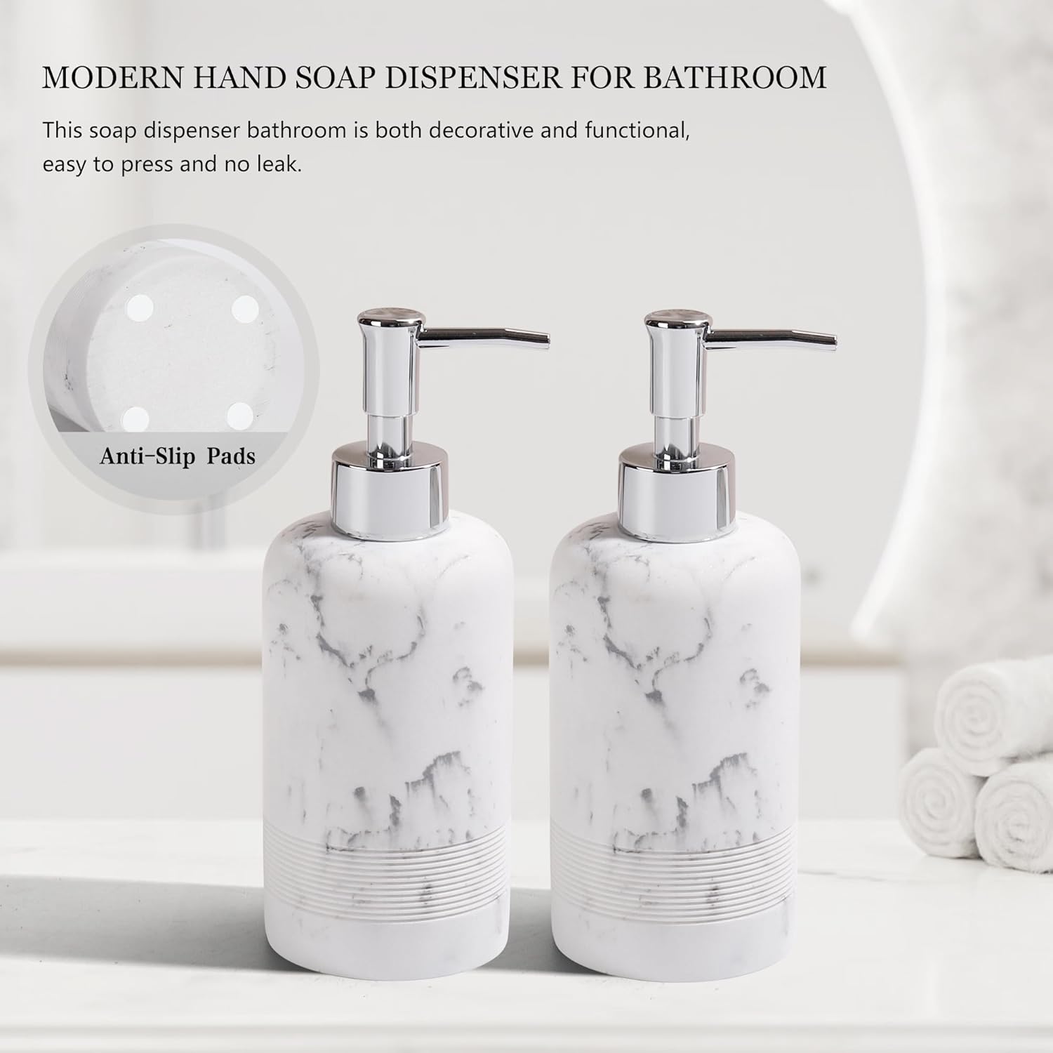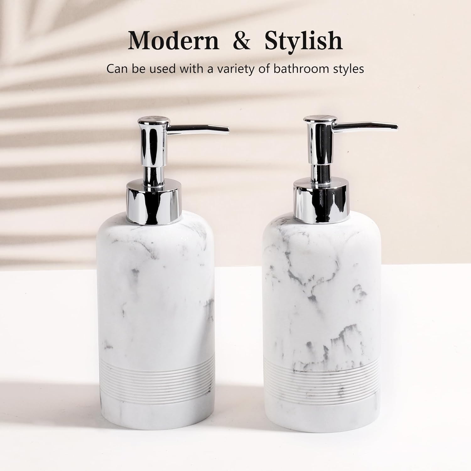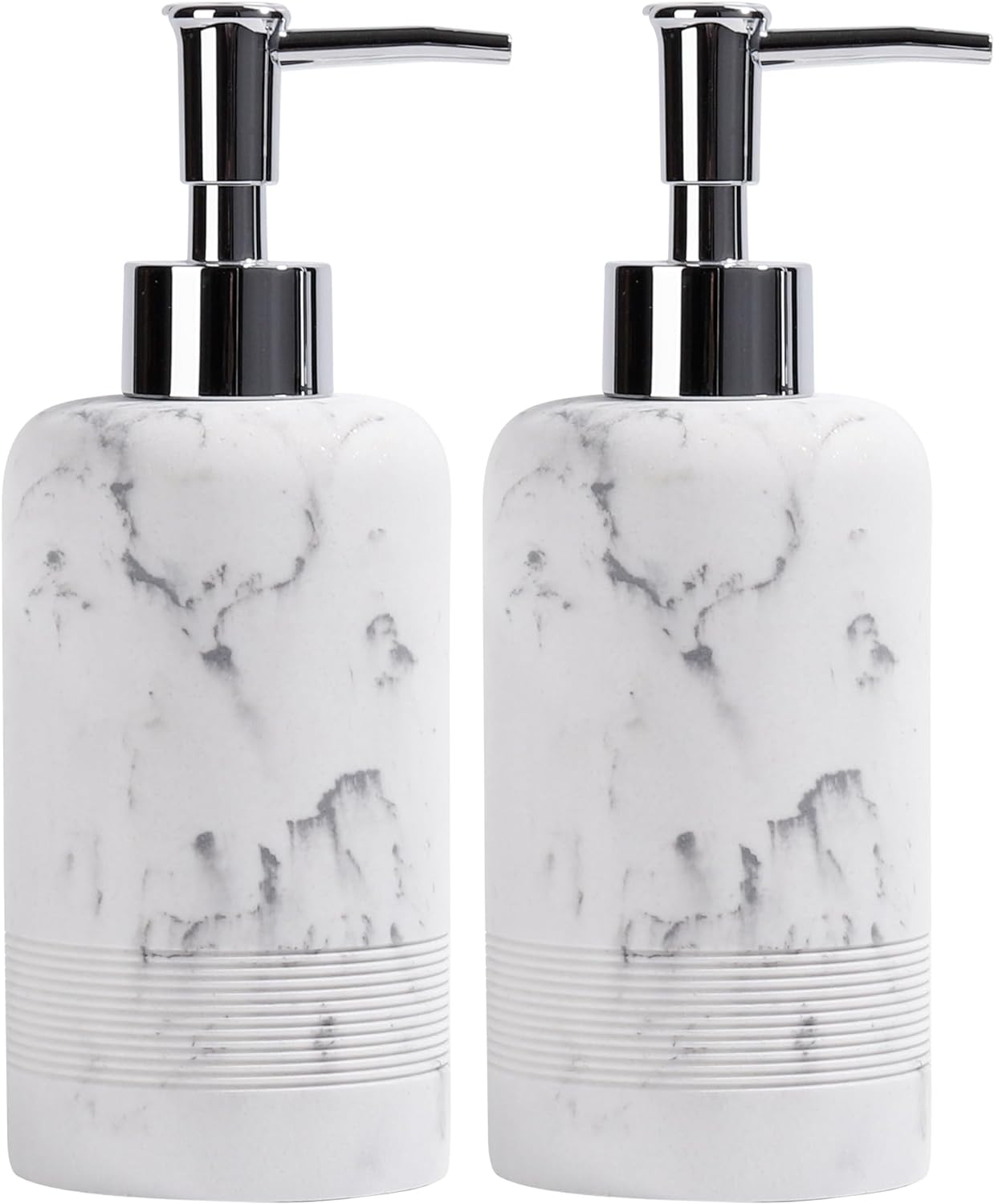 2pcs/Set Hand Soap Dispenser Sets - 10.8oz Refillable Resin Liquid Soap Dispensers with Rust-Proof Pump for Bathroom Countertop or Kitchen, Marble White