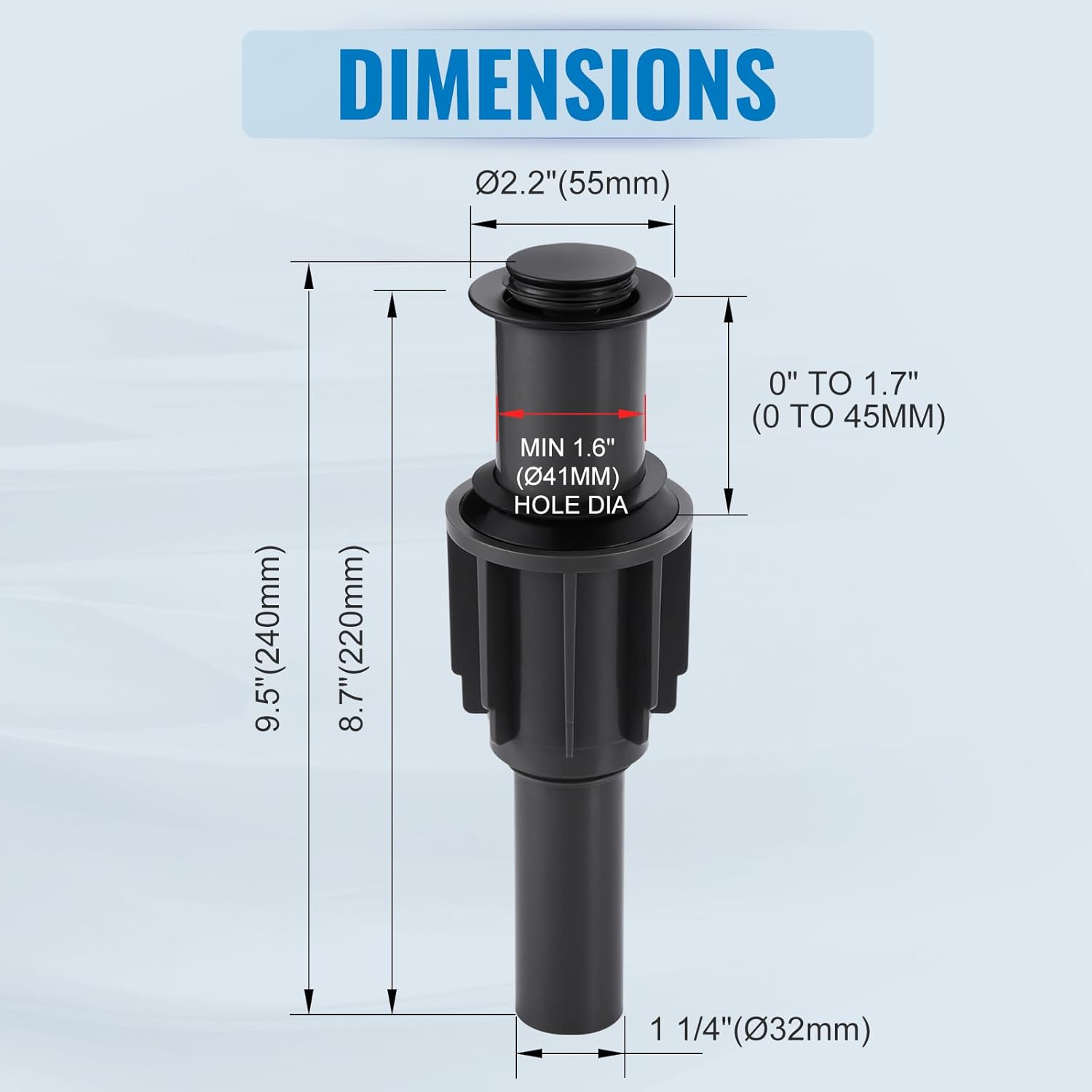 - 【Easy Installation】- This Vessel Sink Stopper is very easy to install within few minutes and no Leakage and Anti-explosion,anti-cracking construction. Designed for sink without Overflow, it is standard sized US plumbing fit Drain Opening from 1 1/2" to 1 3/4" and tailpiece nut size 1 1/4".