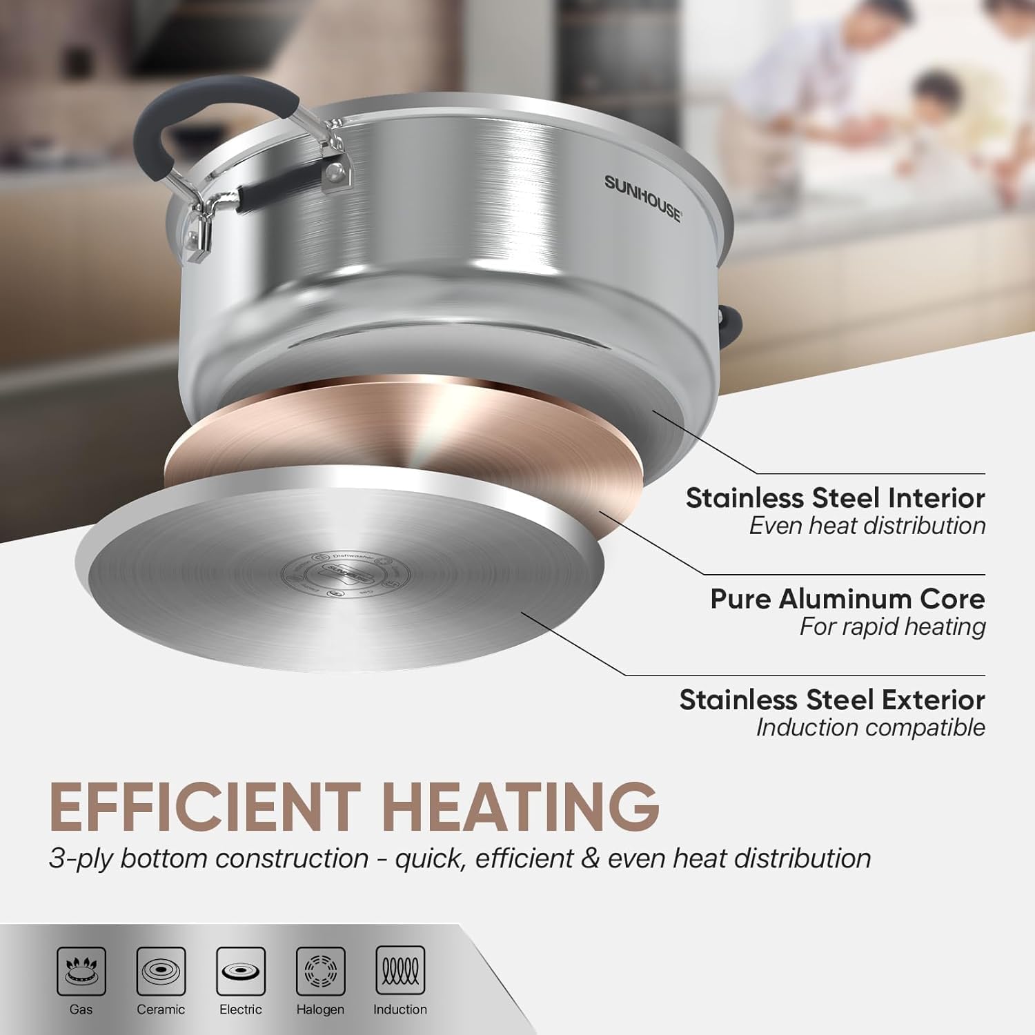 - Induction Pot For All Stovetops - This stock pot has a magnetized base (3-ply construction) that allows for even heat distribution, making it compatible with all stovetops, including induction, gas, ceramic, electric, halogen, etc.