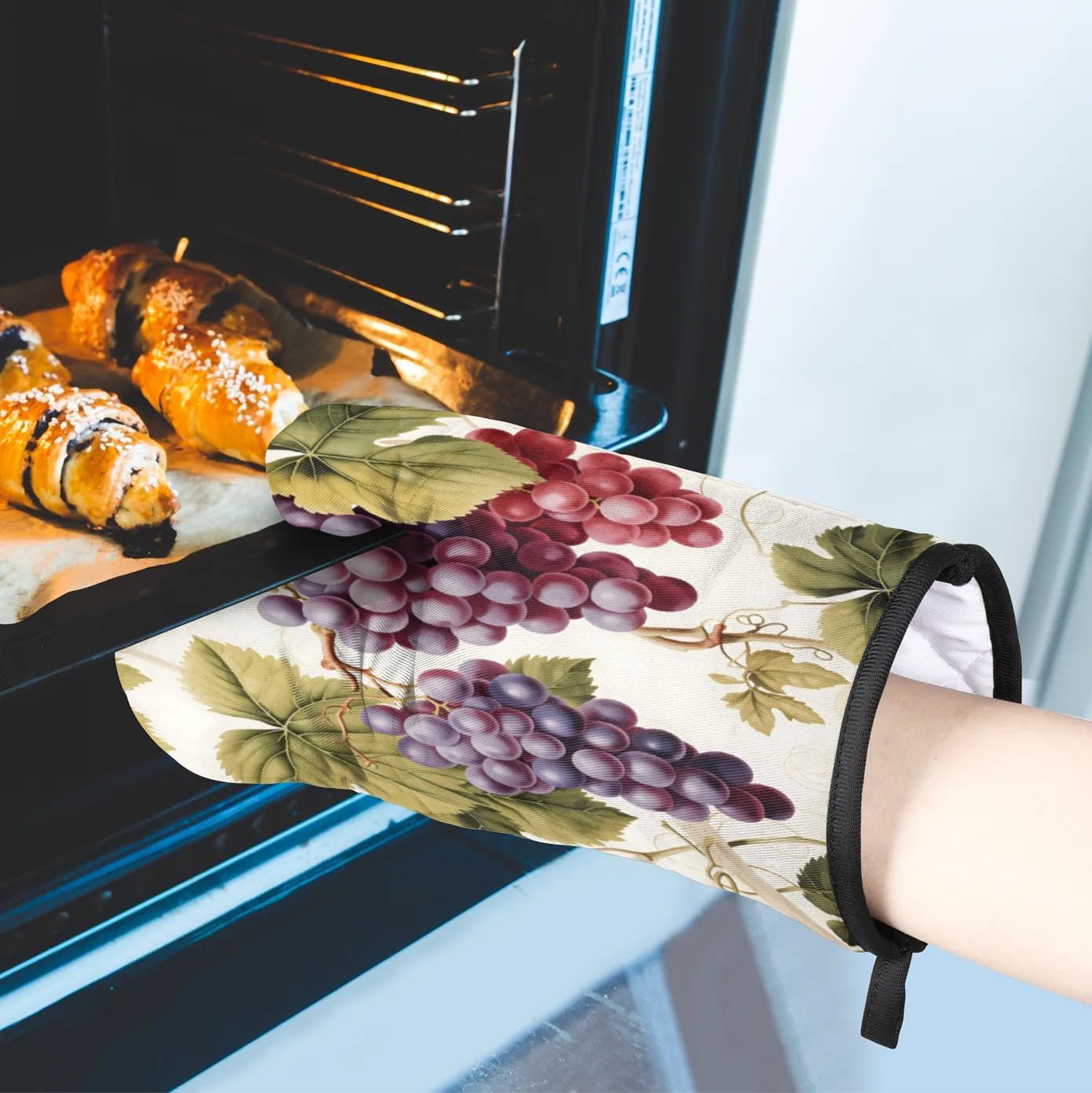 Vintage Grapes Vine Oven Mitts and Pot Holders Sets, 2 Pcs Decorative Kitchen Oven Glove for Cooking
