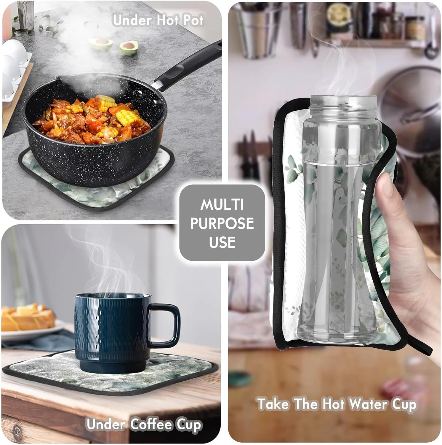 Sage Green Eucalyptus Oven Mitts and Pot Holders Sets, 2 Pcs Decorative Kitchen Oven Glove for Cooking