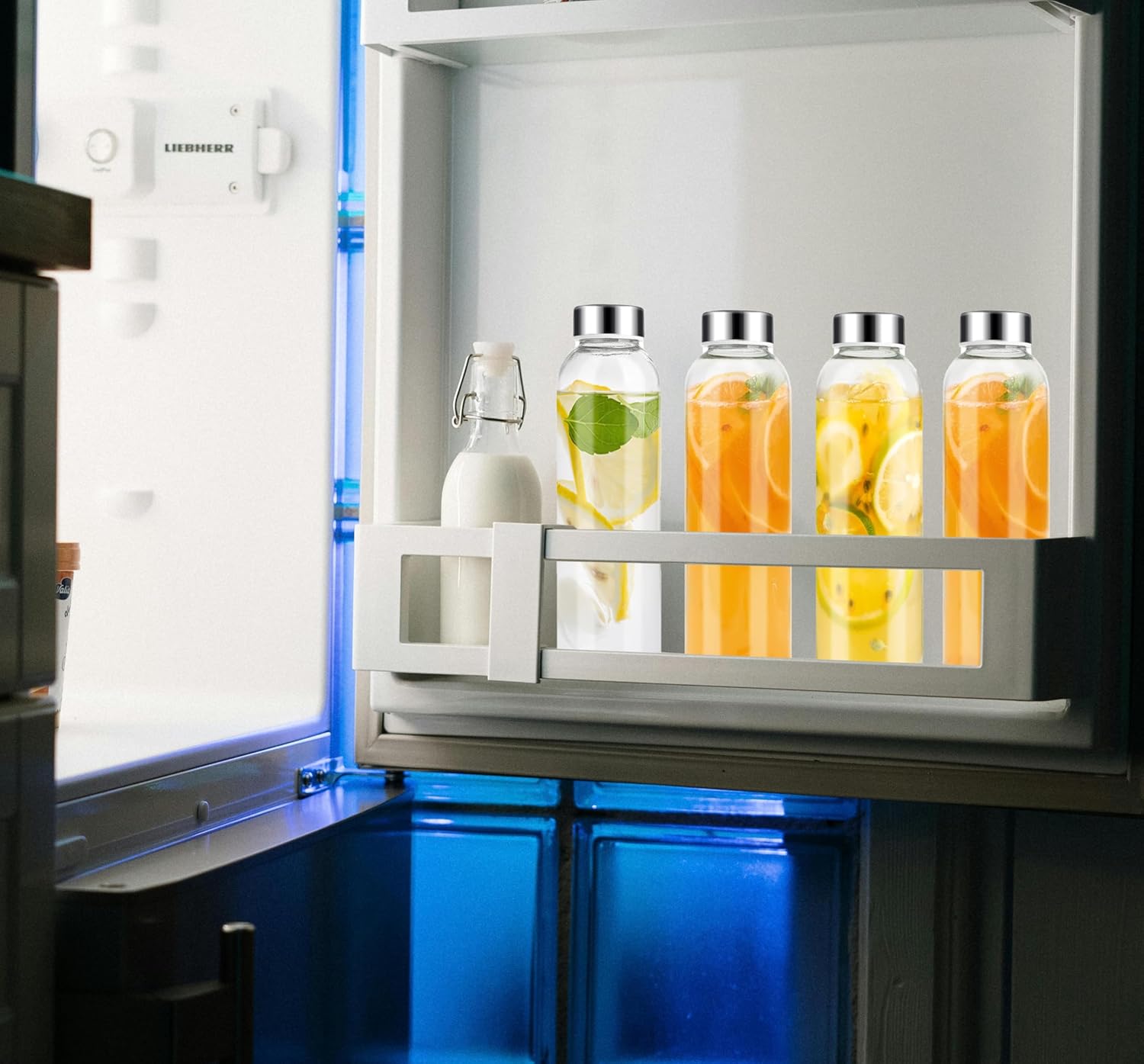 Clear Glass Bottles with Lids 6pcs Set 18oz,Reusable Glass Water Bottle with Stainless Steel Cap, 100% Leak Proof,Can be Used for Fruit Juice, Tea, Water, etc