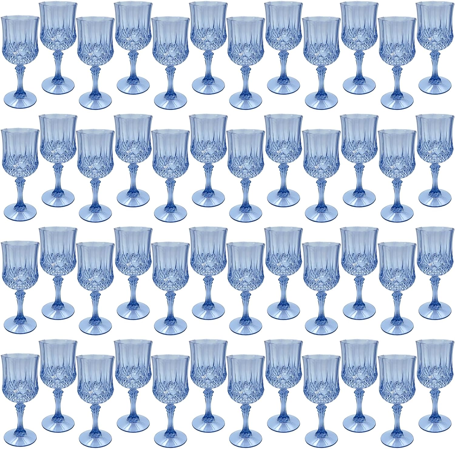 Blue Plastic Wine Glasses,Plastic Goblets for Parties,Drinking Glasses for Wedding Reception, Grand Event Party Supplies (48, Blue)