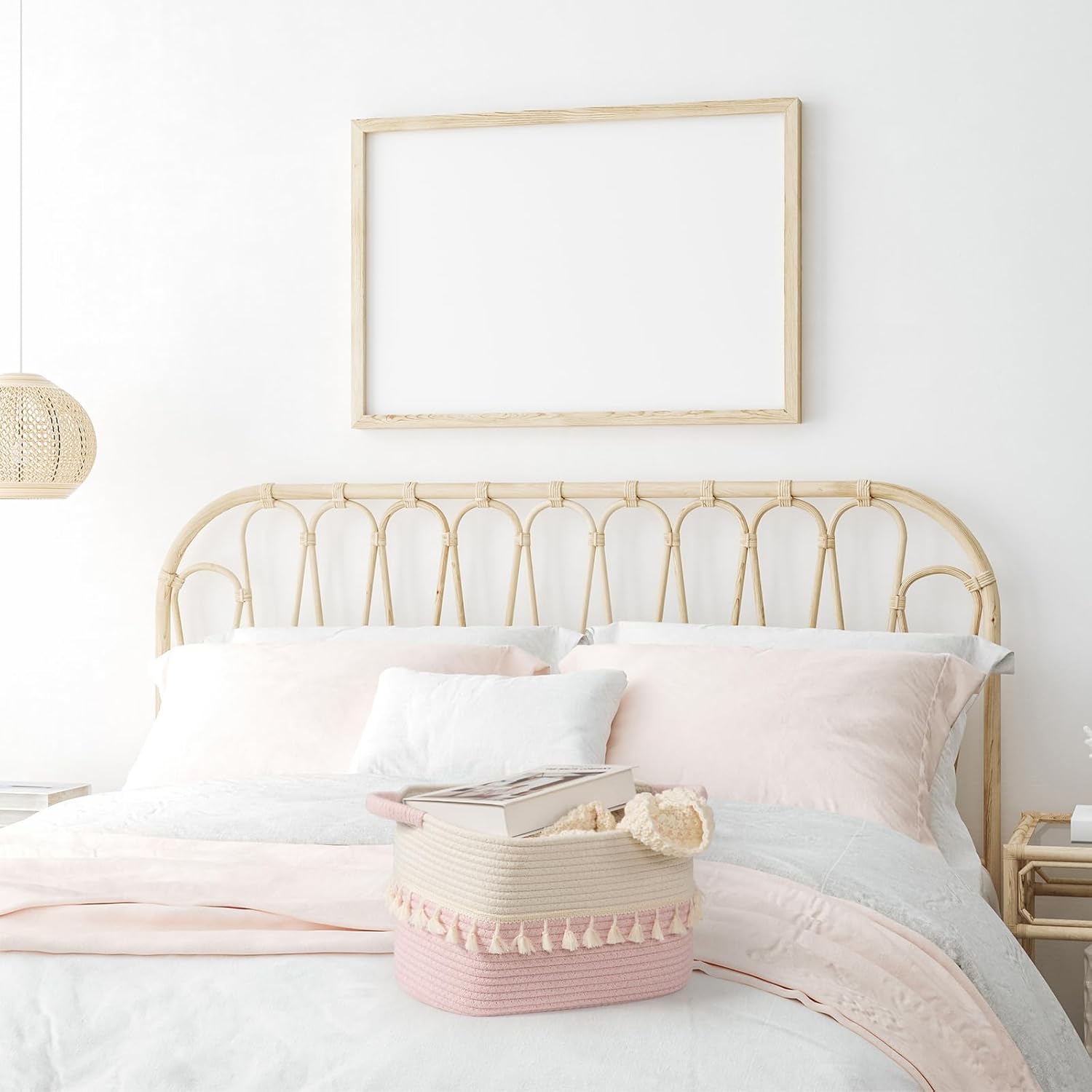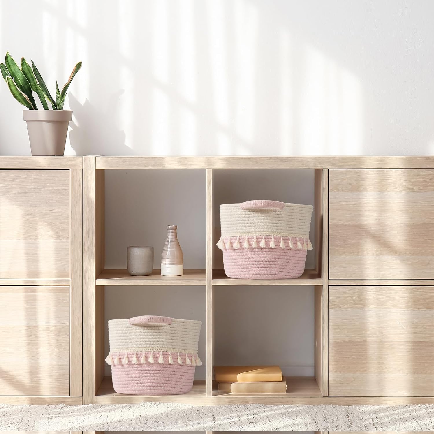 - Solid and durable: Our boho storage baskets feature sturdy handles that make them easy to move around. Rope baskets stand the rigors of daily use. Thanks to a flexible and resilient cotton material, they can bounce back into shape after being folded