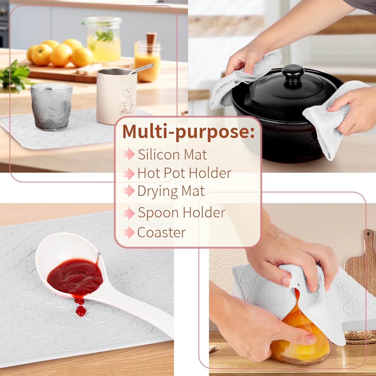 - FOOD GRADE MULTIPURPOSE SILICONE PLACEMATS: 100% BPA free silicone dinning mats. Reusable and recyclable approved. Heat resistant between -40° and 260°. These mats are durable and can last for years. Ideal for daily use for food prep and serving for years. Great surface protector. Go with our tray to be ideal for transporting your plates or glass without sliding off.