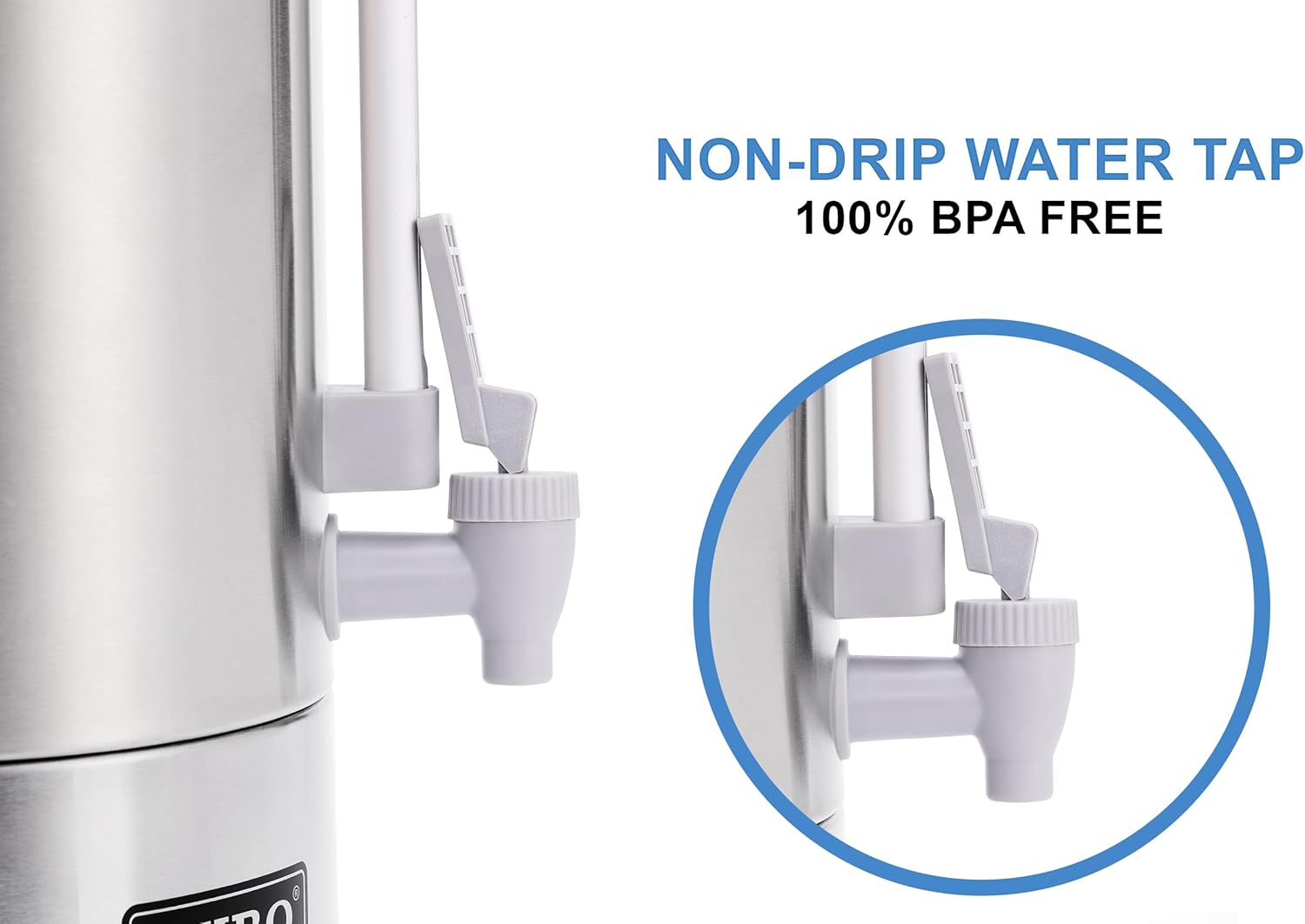 - ✪ DURABLE--Food grade 304 S/S body resists dents and maintains lustre over time. High quality spigot dispenser is installed for heavy duty usage.