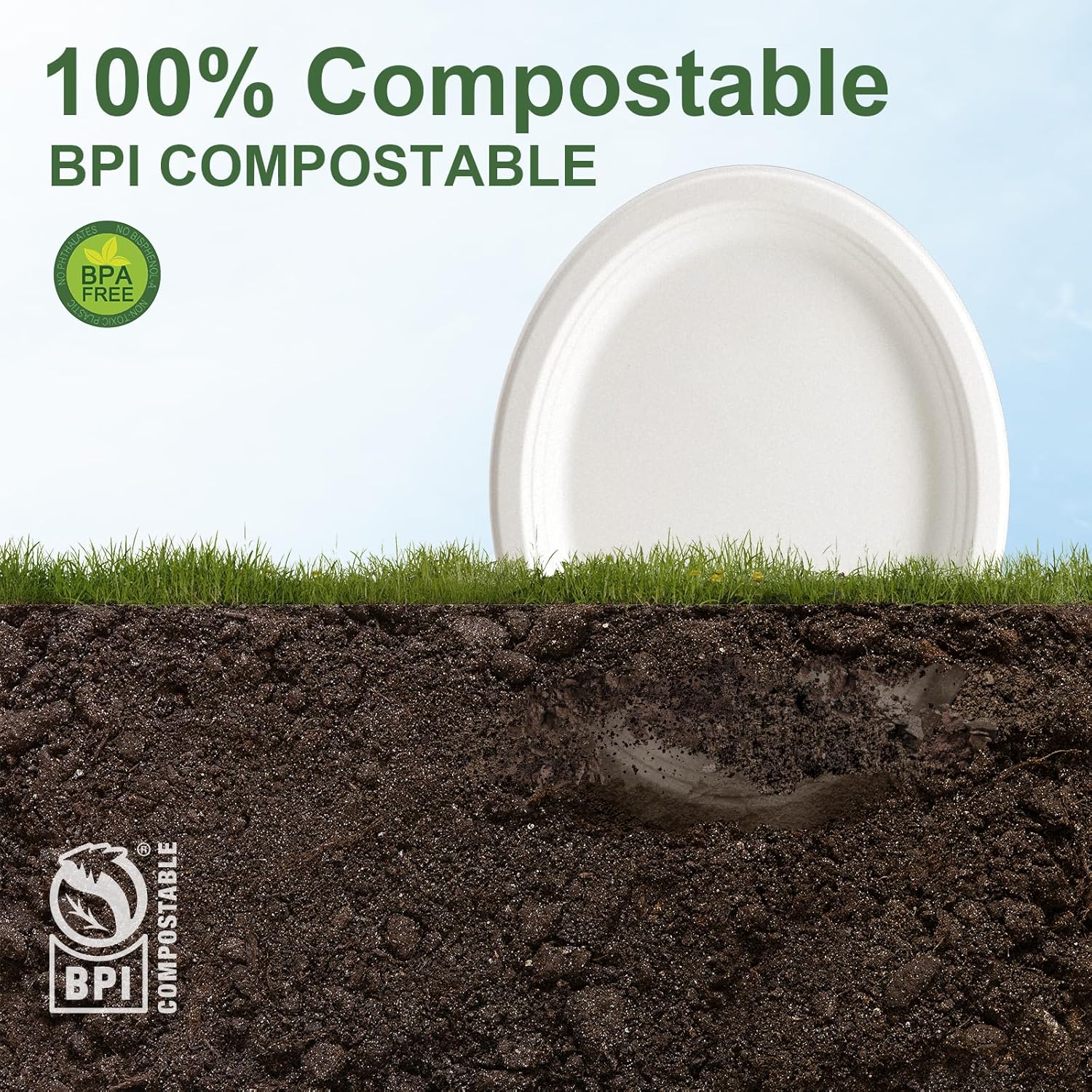 - 【Versatile & Easy to Use】Whether you're hosting a picnic, party or any other event, these biodegradable paper plates are suitable for any hot or cold dish. Disposable paper plates are a great way to ensure quick and easy cleanup, you just throw them away after using and save time by not having to clean. Allowing you to focus on your day and have more time with family and friends making unforgettable memories.