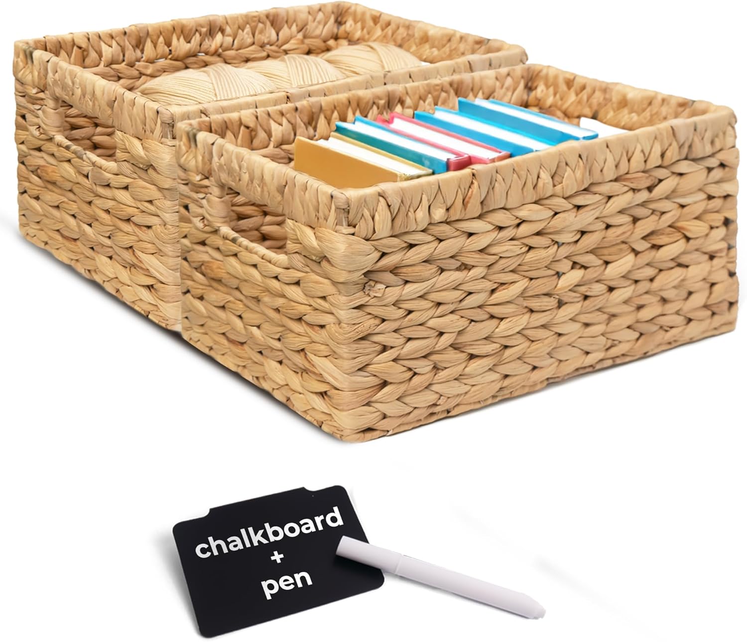 - šæ[ Pack of 2 Pcs] Designed to fit comfortably on shelves, or for room organizing. Hyacinth wicker storage baskets include two medium-sized woven storage bins (13.0 x 8.25 x 7.0 in). And may vary within 1/4 in due to handwoven.