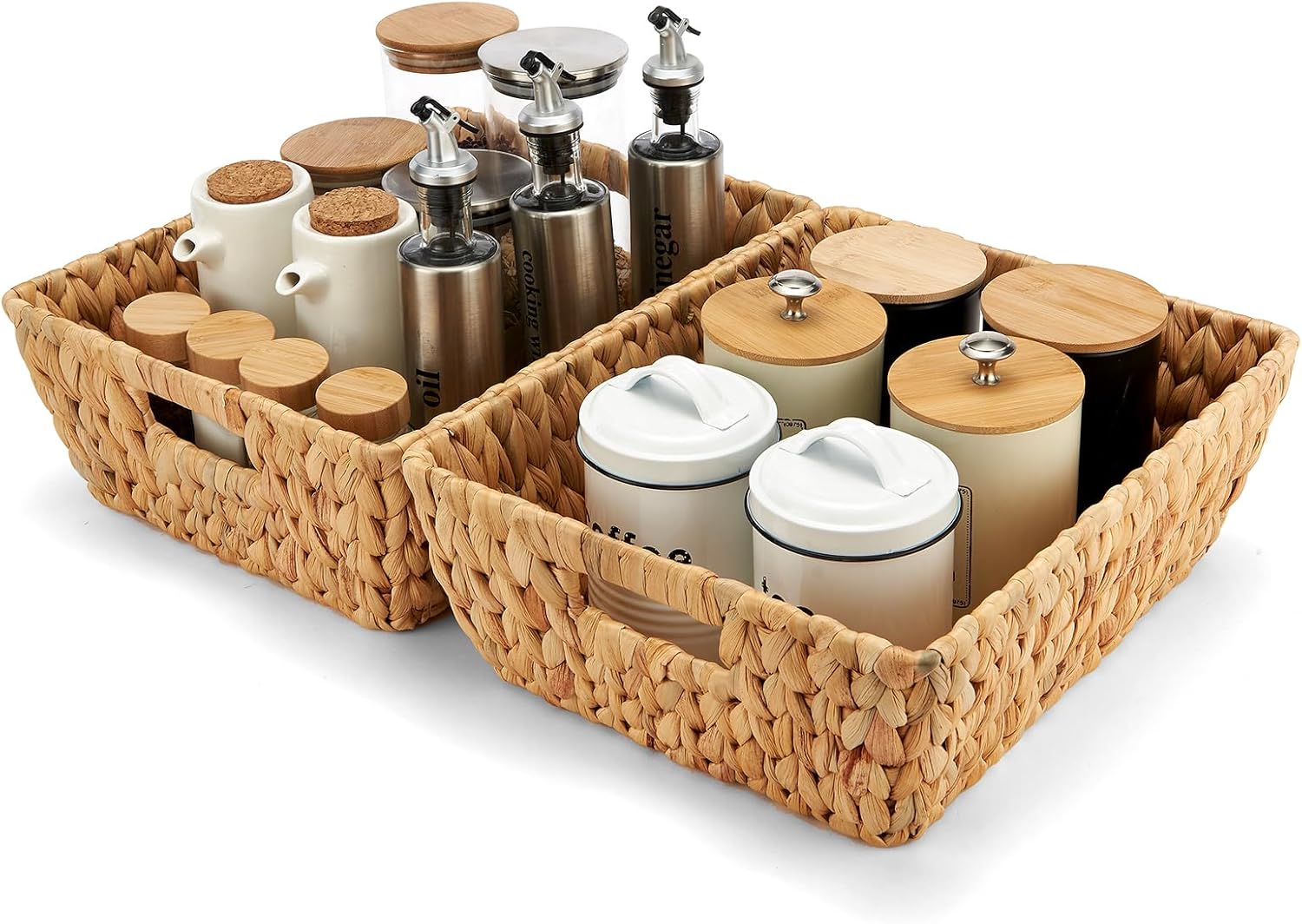 - [NATURAL WATER HYACINTH WICKER BASKETS] The wicker baskets for organizing are made of 100% natural water hyacinth, safe for daily use.