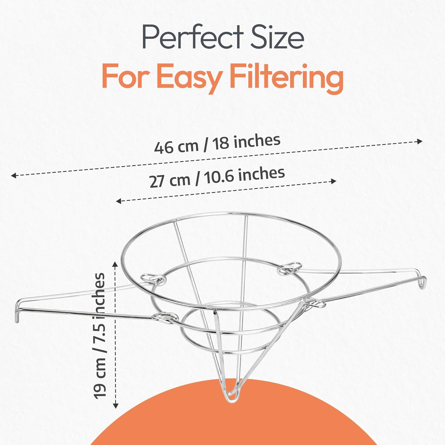 - COMMERCIAL KITCHEN GRADE - Perfect for both home kitchens and professional restaurants, this cone filter holder stand is a must-have for any cook. Ideal as a deep fryer oil filter holder or maple syrup filter stand, it ensures your recipes stay pure and delicious, maintaining the quality and taste you expect from your deep frying tasks.