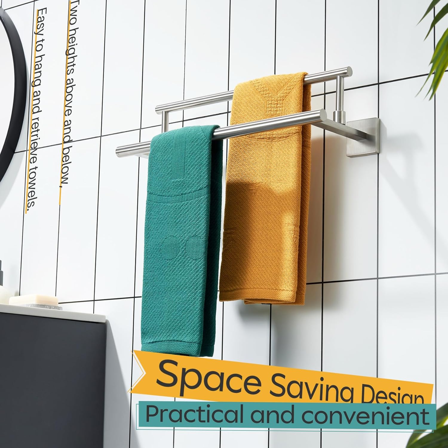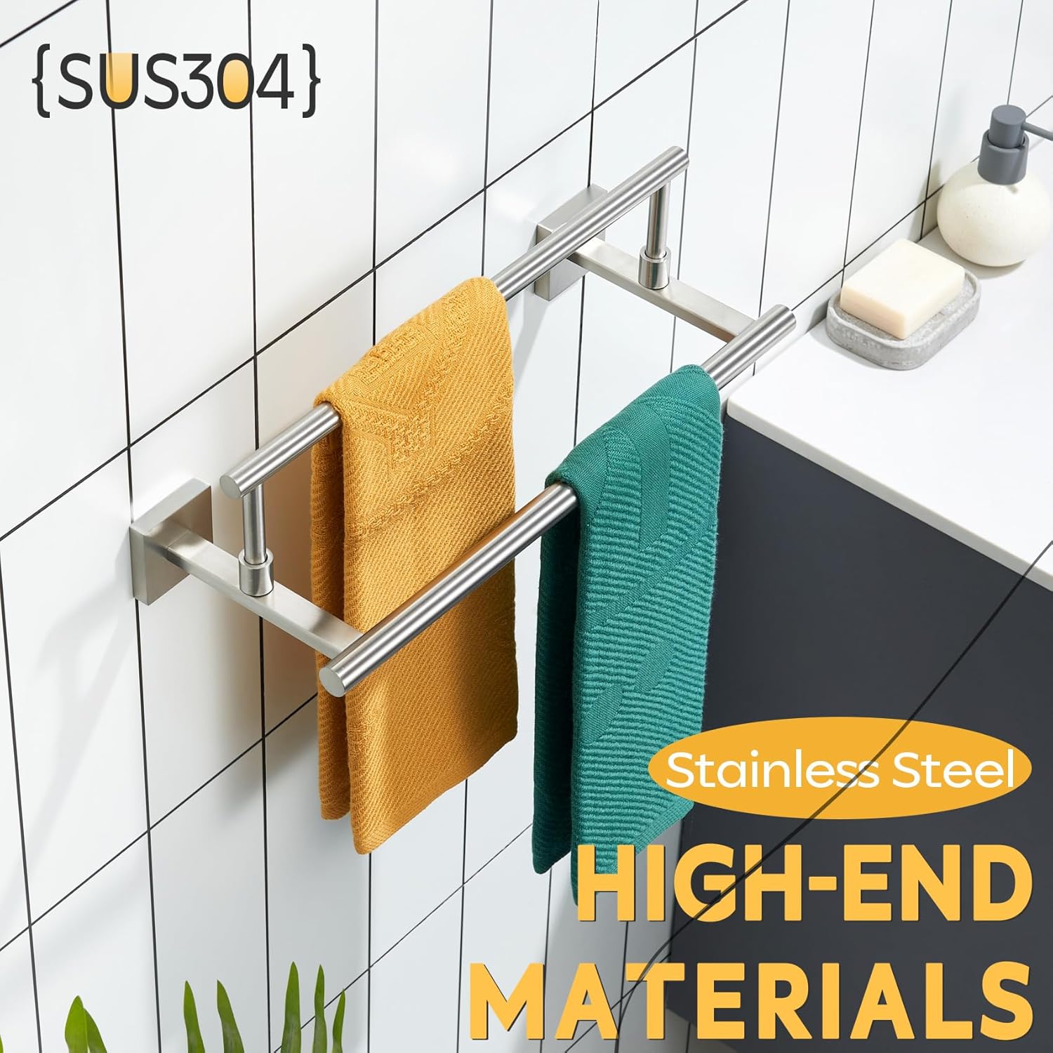 - ◄ PREMIUM MATERIAL ► KOKOSIRI Double Towel Bars made of SUS304 Stainless Steel and features an all-metal design using high-grade steel to resist rust and corrosion from daily use. For your health, all the materials we use are the highest quality and harmless. You can rest assured to use all of our products