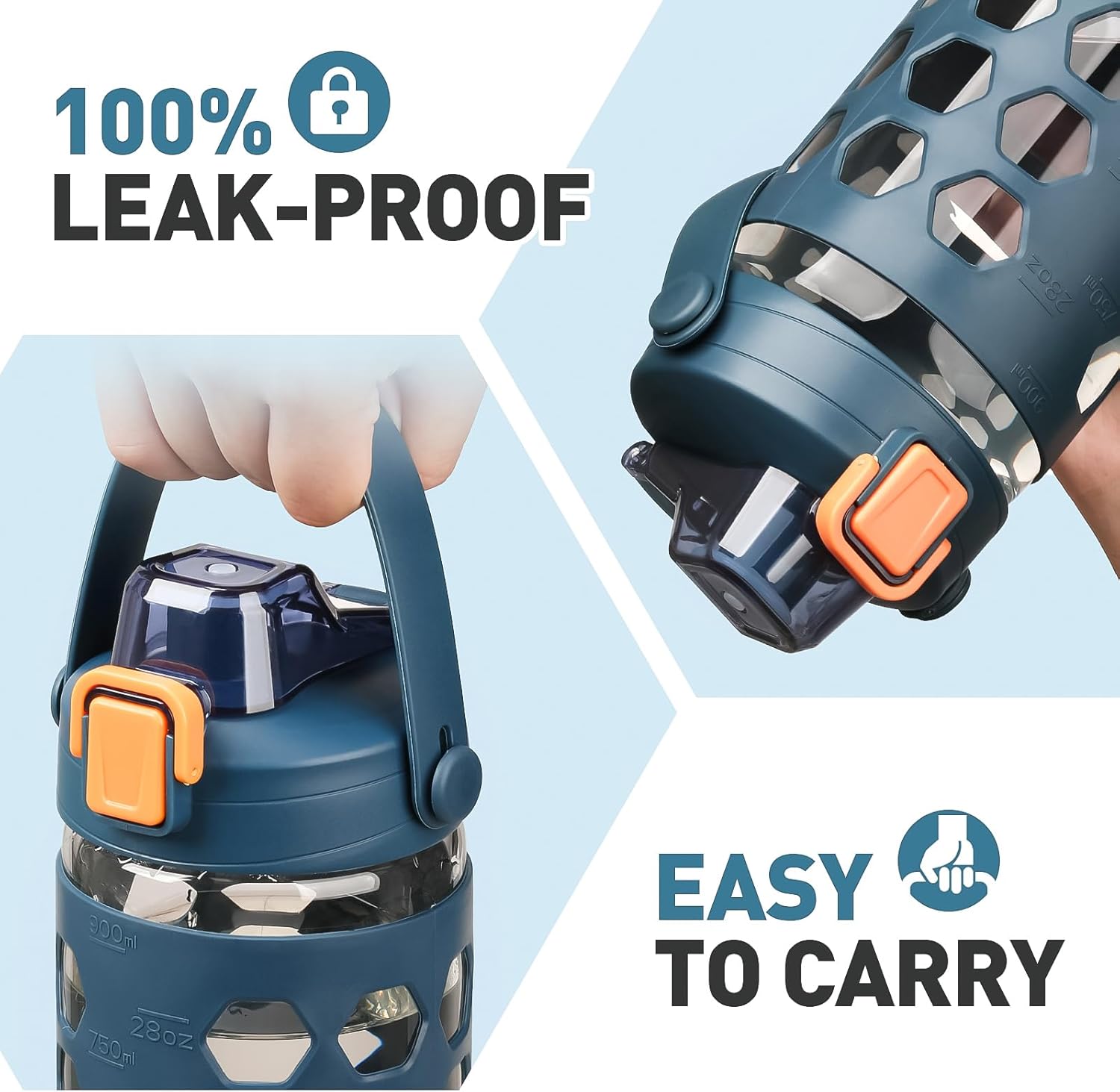 - SILICONE SLEEVES FOR BETTER GRIP:Use this water tumblers at home, office, take it to the gym or anywhere really! Our glass water bottles comes with a stylish silicone sleeve to offer you additional protection and to provide an extra grip to the bottle. The sleeve is removable, so you can use the water jug with or without it.