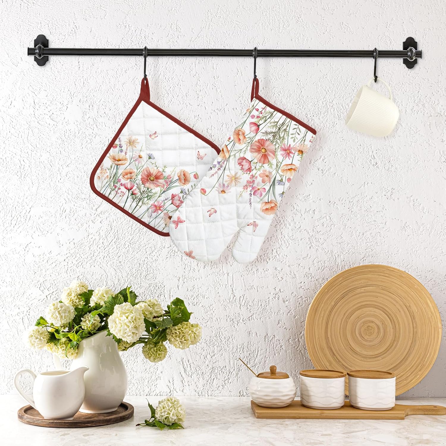 - PREFERRED MATERIAL: Each pot holders & oven mitts set is carefully crafted from 100% cotton, with dyes sourced from plants, digital printing technology and upgraded color fixing process, the colors are bright and fade-resistant. Cotton lining to bring you comfortable and breathable touch and protect your skin as well.