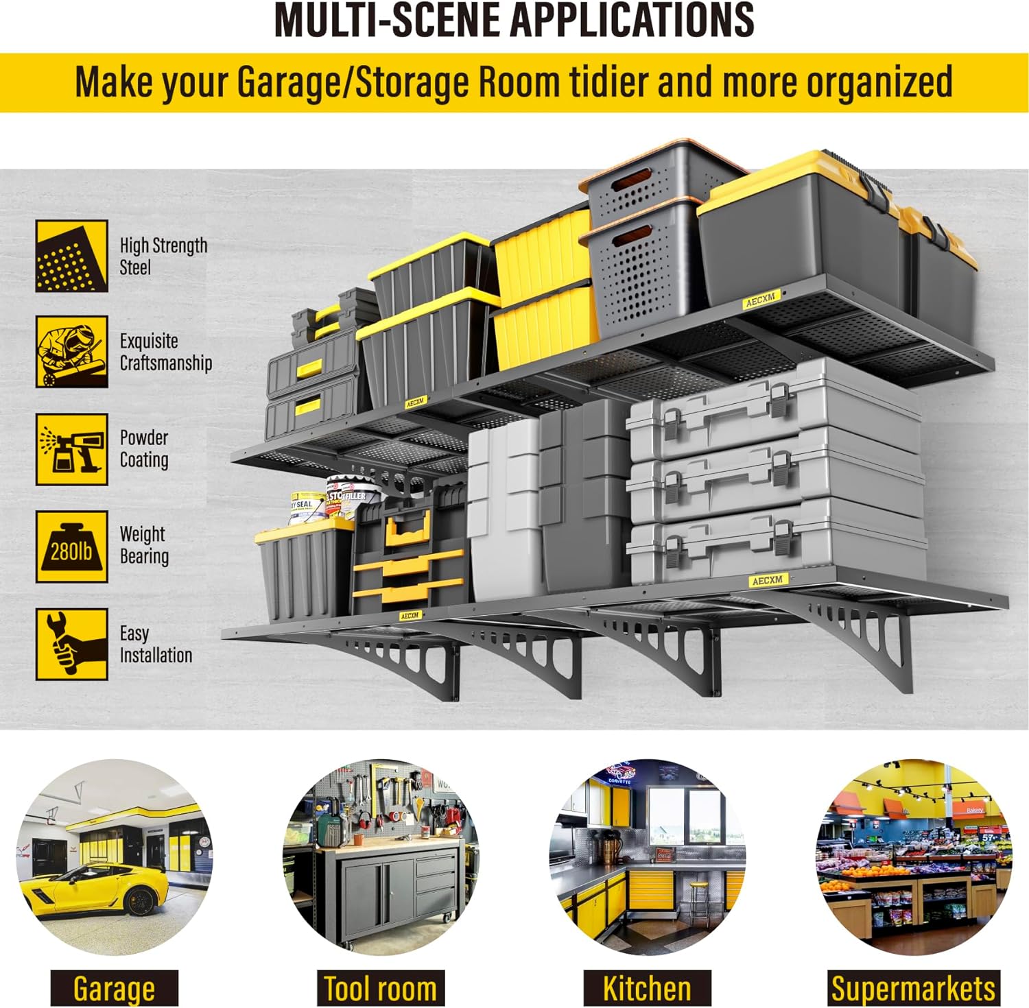 - Easy Installation: Includes high-quality screws and a detailed instruction manual, allowing one person to effortlessly complete the setup. This 2x3ft garage shelf wall mount offers ample storage space for your garage, kitchen, or pantry, keeping everything organized and within reach