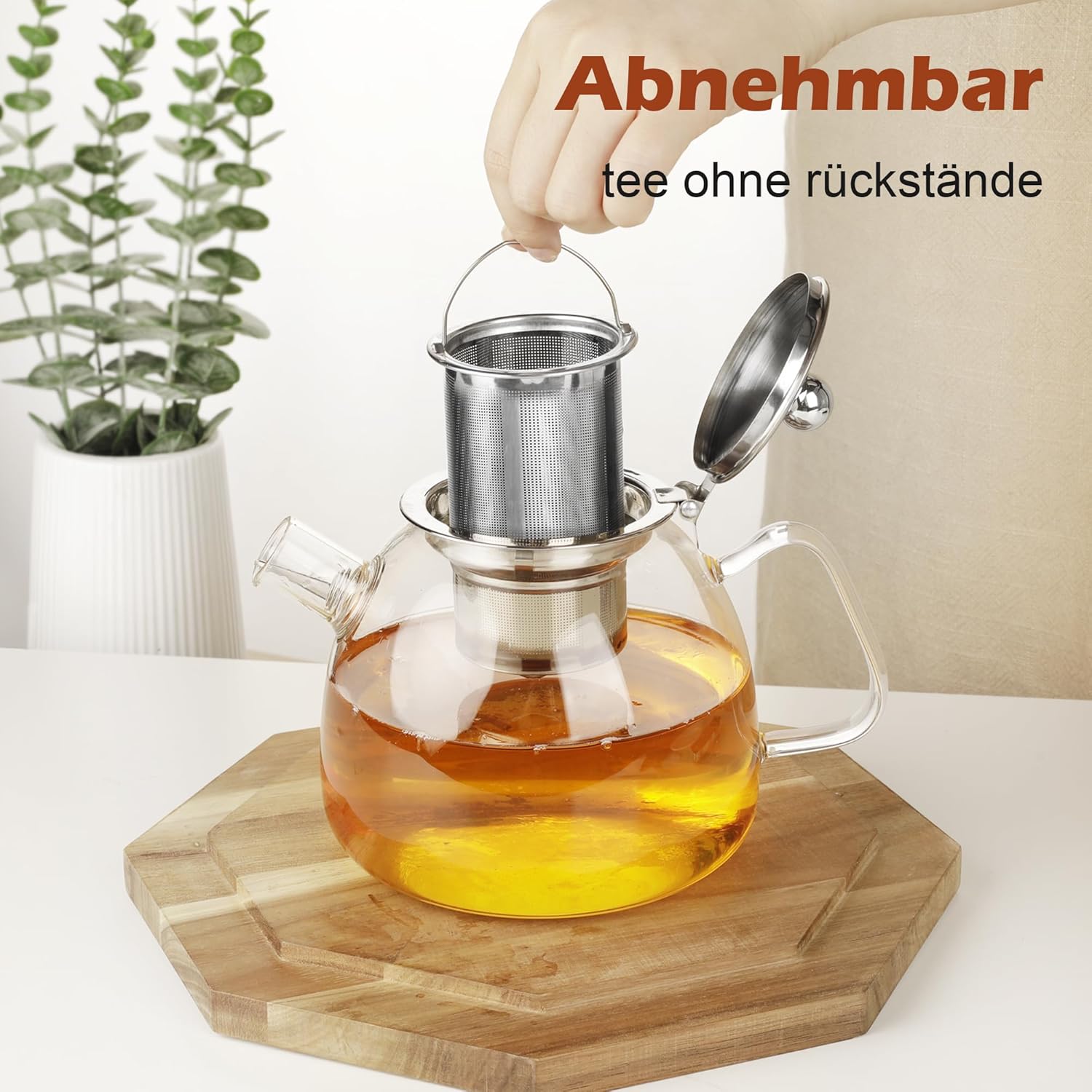 - GLASS TEAPOT WITH REMOVABLE INFUSER: Teapot comes with a removable infuser, making it easy to brew loose-leaf tea,tea bags and blooming tea. The detachable 304 stainless steel tea maker is rust-resistant.