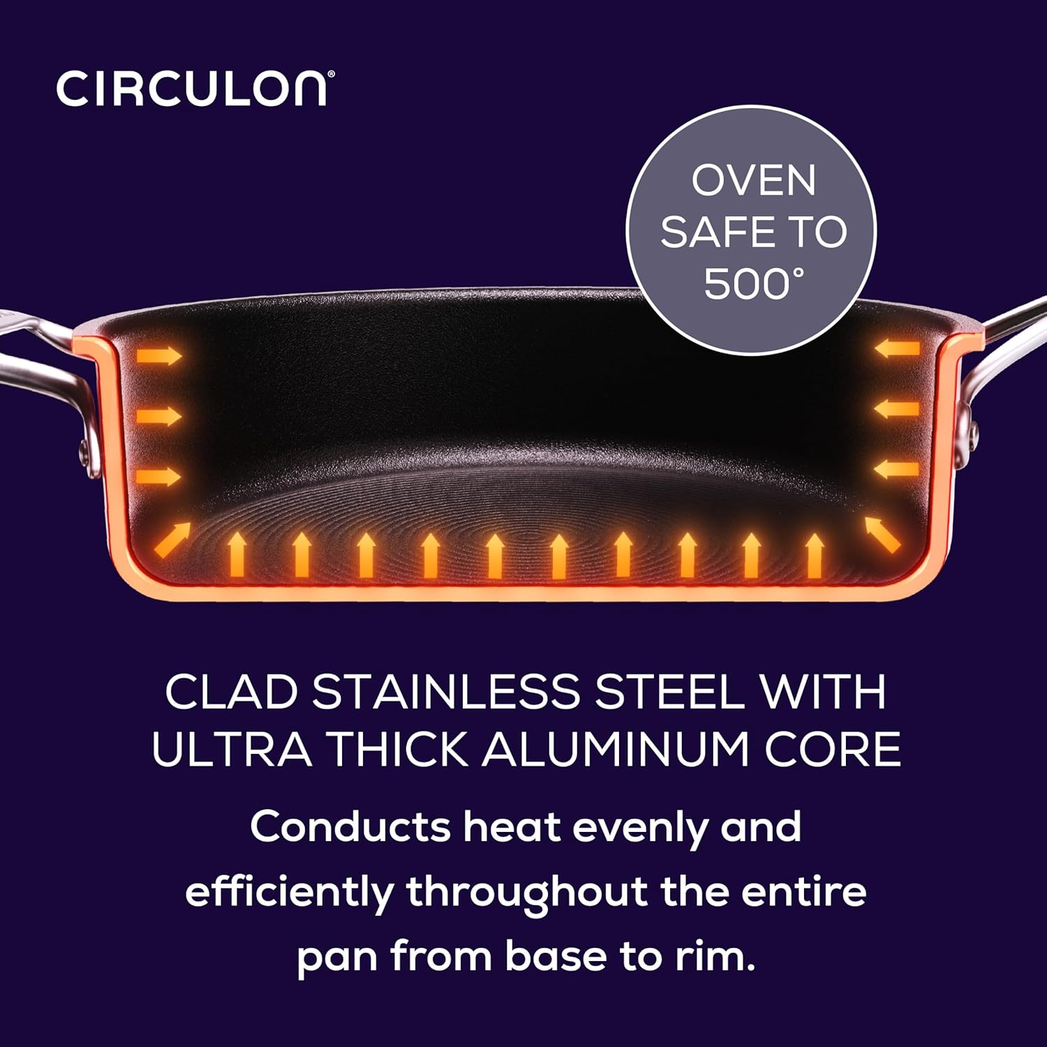 - SCRATCH FREE. WORRY FREE. FOREVER: Circulon’s patented ScratchDefense nonstick technology is our most advanced nonstick cooking surface and engineered not to scratch, ever.* It has been laboratory tested to last 130x longer than the competition—that’s more than 350,000 scrapes without scratching.