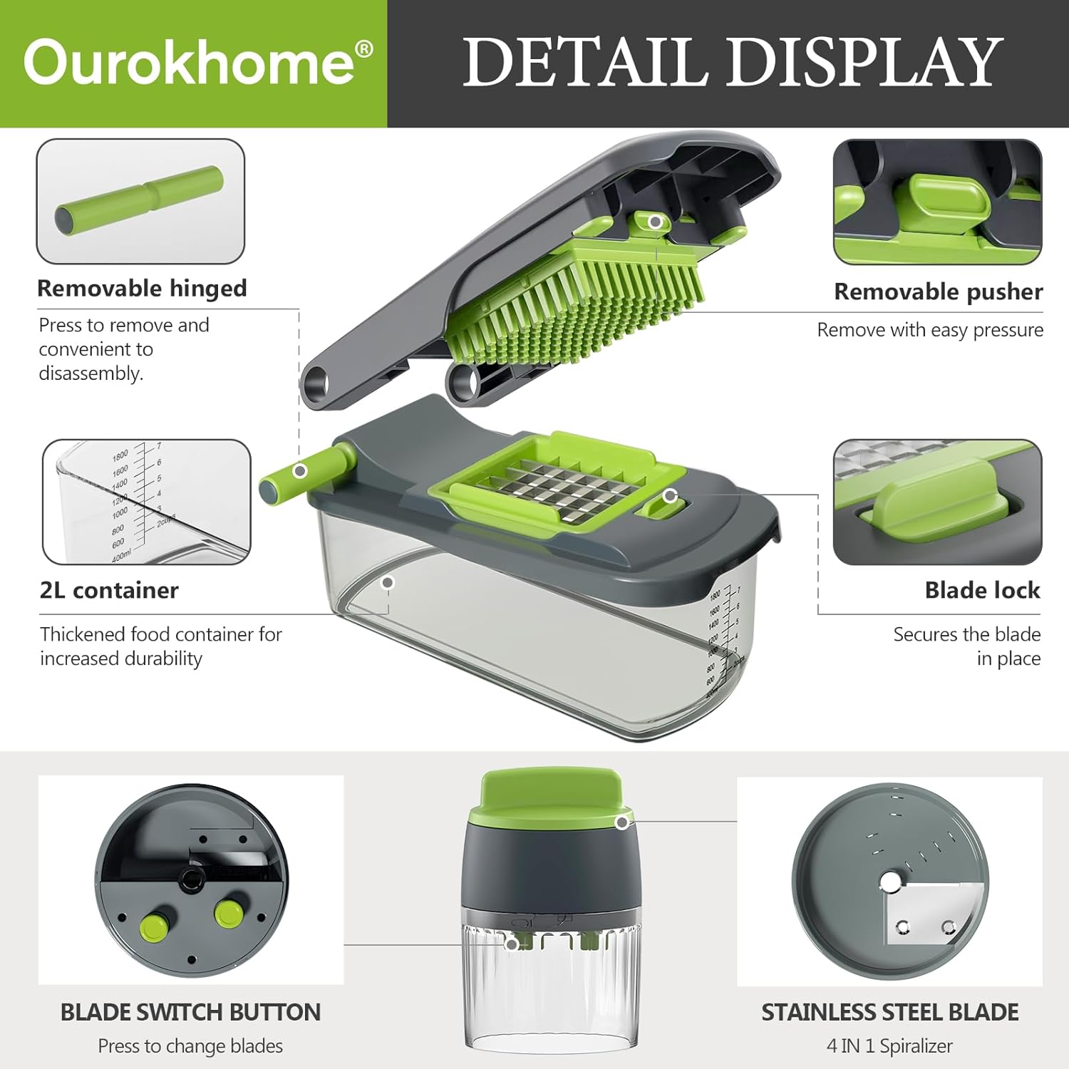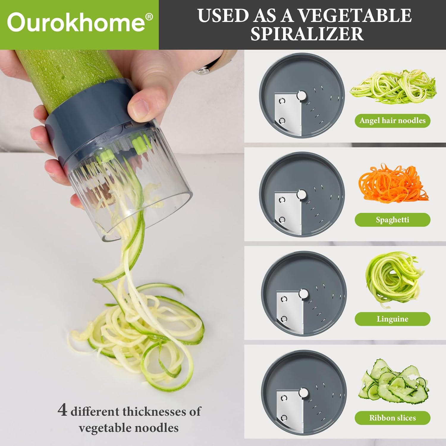 - A kitchen essential gadgets - Whether you're a novice cook or a seasoned pro, the Ourokhome 6 in 1 vegetable chopper and spiralizer is a must-have in any kitchen. It's versatile, easy and safe to use and store