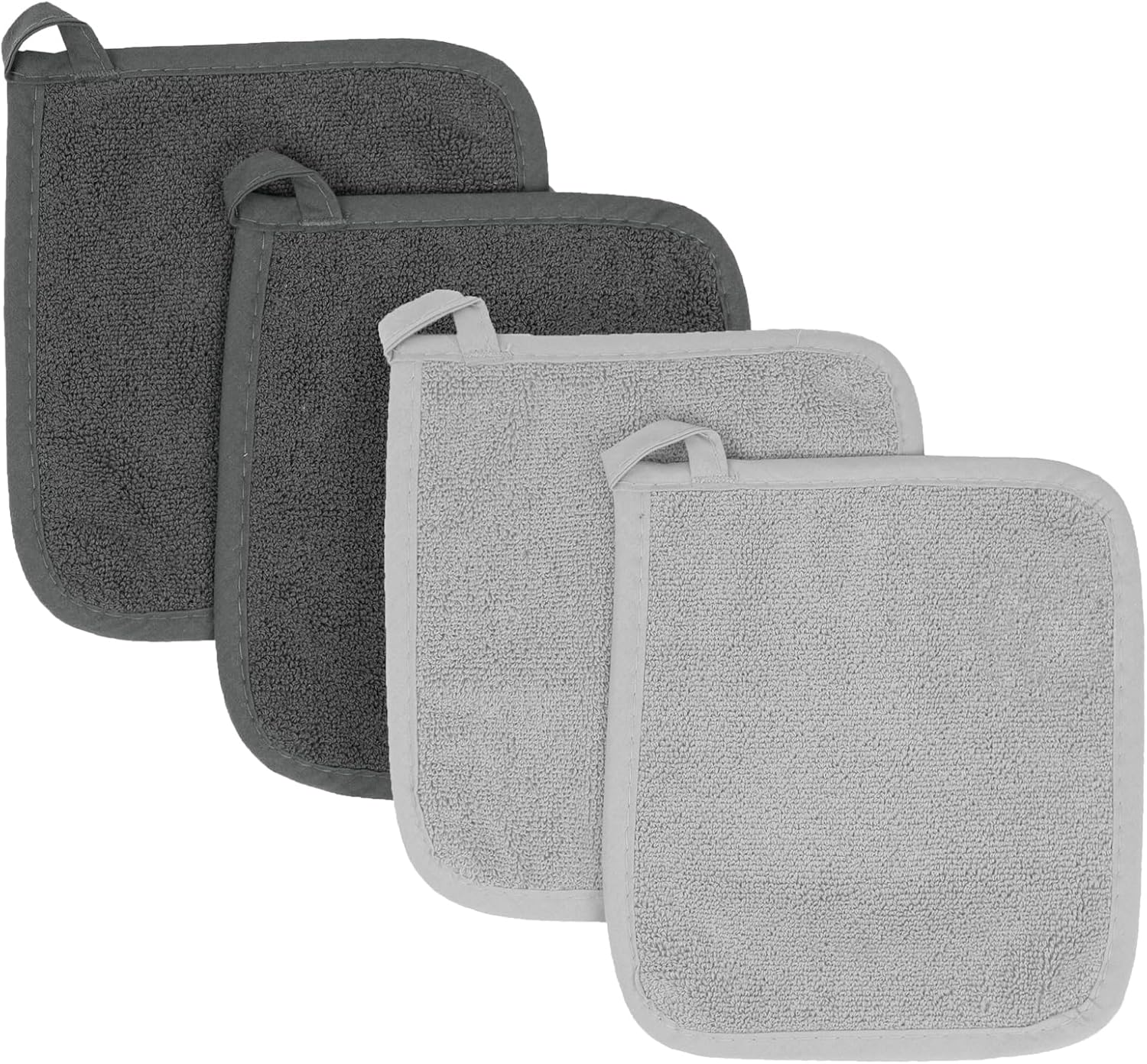 RITZ Terry Potholder & Hot Pad: Unparalleled Heat Resistant, Durable 100% Cotton – Ergonomically Designed for Optimal Grip – Easy-Care Machine Washable – 4-Pack, Titanium/Graphite