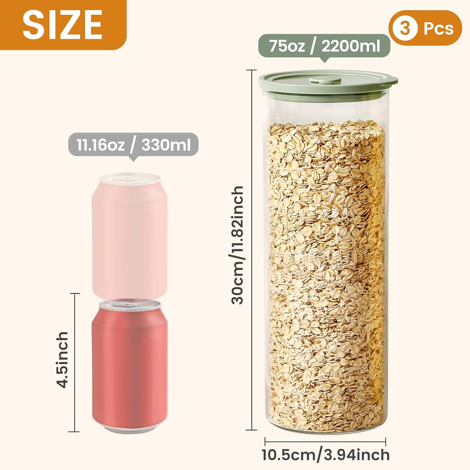 Glass Food Storage Jars with Lids[Set of 3], Perfect for Pasta, Cookies, Nuts, Coffee, Cereal, Flour, and More, Organize Your Kitchen with these BPA-Free Glass Jars with Silicone Lids