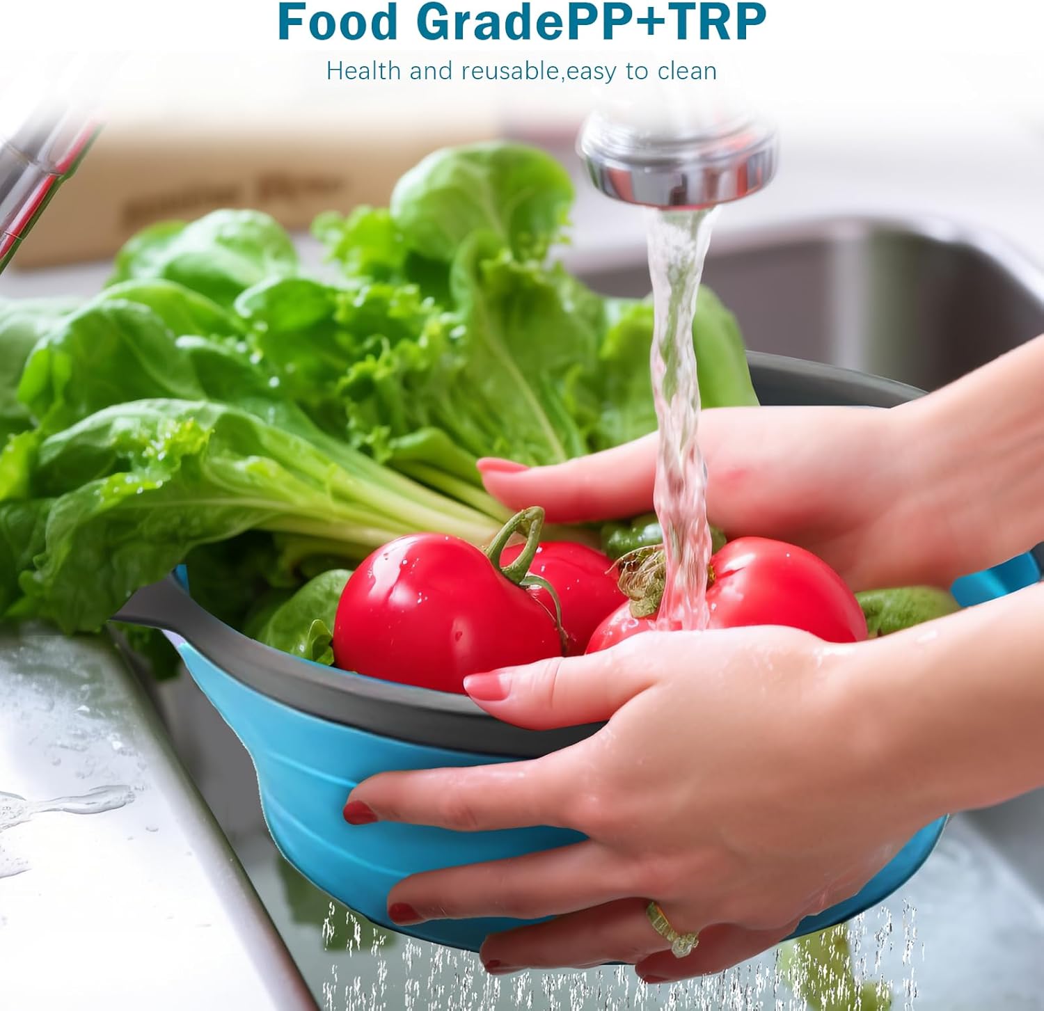 - Superior Quality: Our collapsible colander set is made of TPE+PP material, which is more durable and long-lasting than TPR. It's also BPA-free and reusable, making it a healthier and more eco-friendly choice.