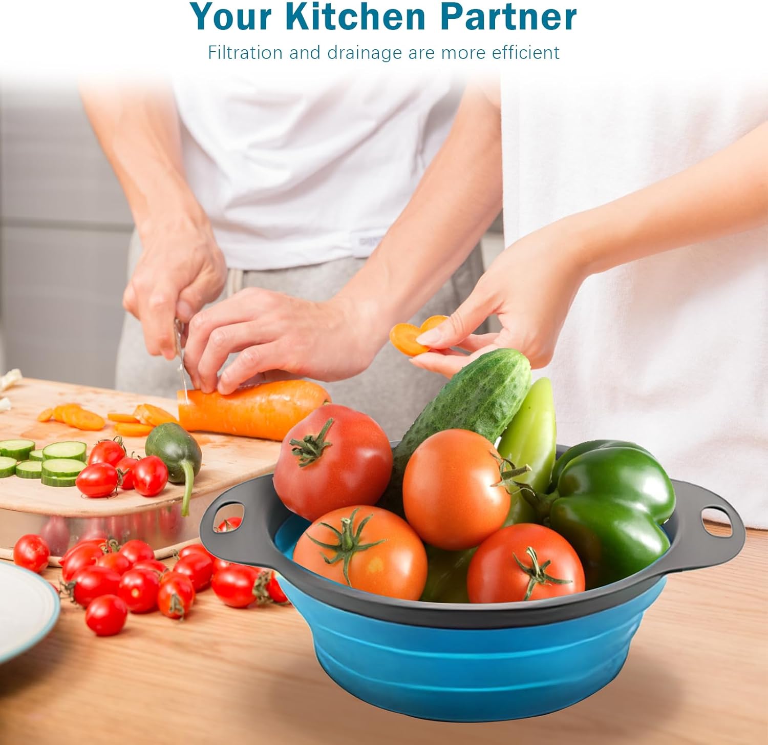Collapsible Colander Set of 2 Silicone Kitchen Strainer Set, Perfect for Draining Pasta, Vegetable and fruit for Kitchen and Travel Use (Blue)