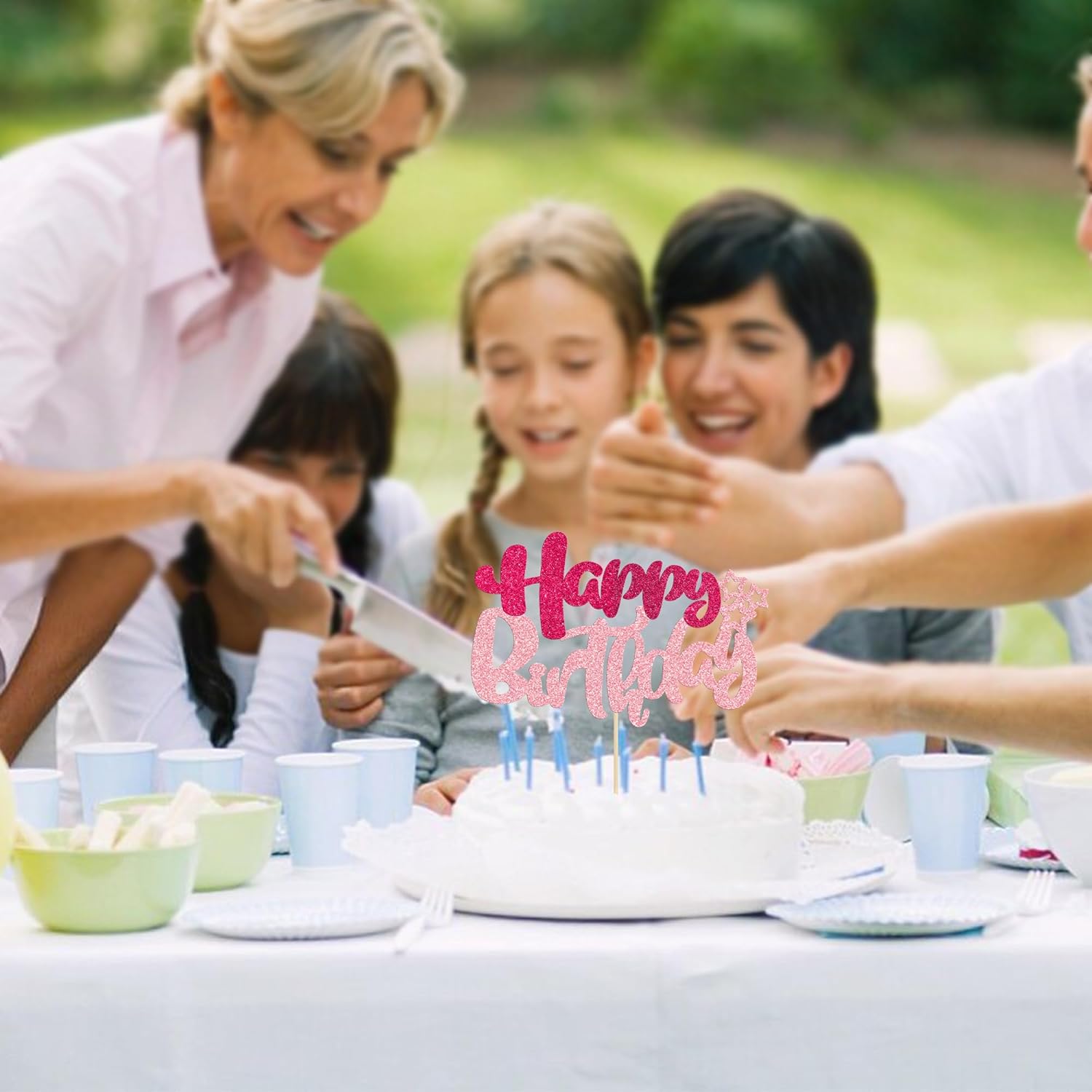 Ephlyn 1Pcs Glitter Happy Birthday Cake Topper for Celebrating Anniversary Theme Party Cake Decorations Supplies Rose Red Pink