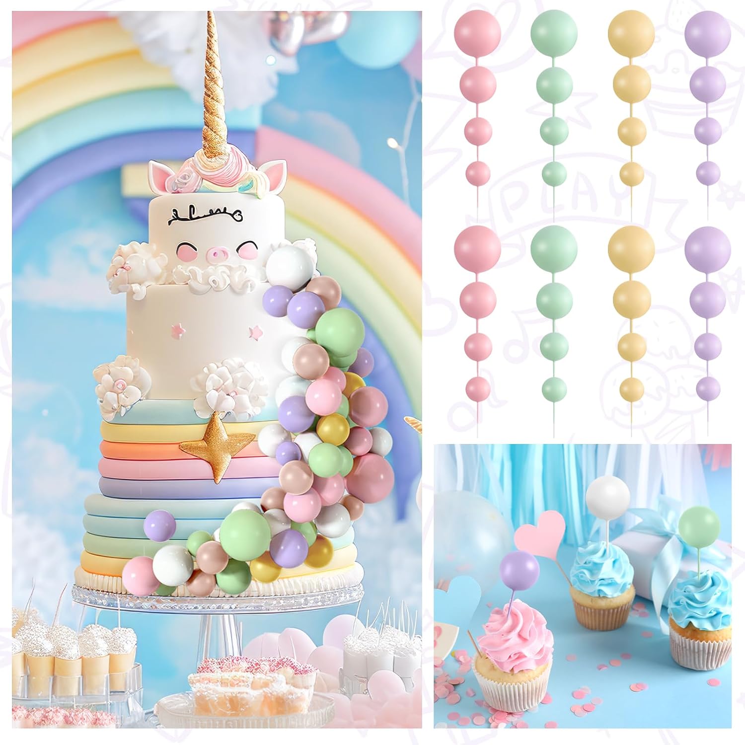 - Wide Application: These ball cake decorations are colorful and cute, can be used for birthday cakes, cupcakes, fruit and other desserts decorations. The cake insert toppers are an ideal cake decoration for birthday party, baby shower, garden party, home party, Valentines, wedding, anniversary party, Christmas, Halloween and so on