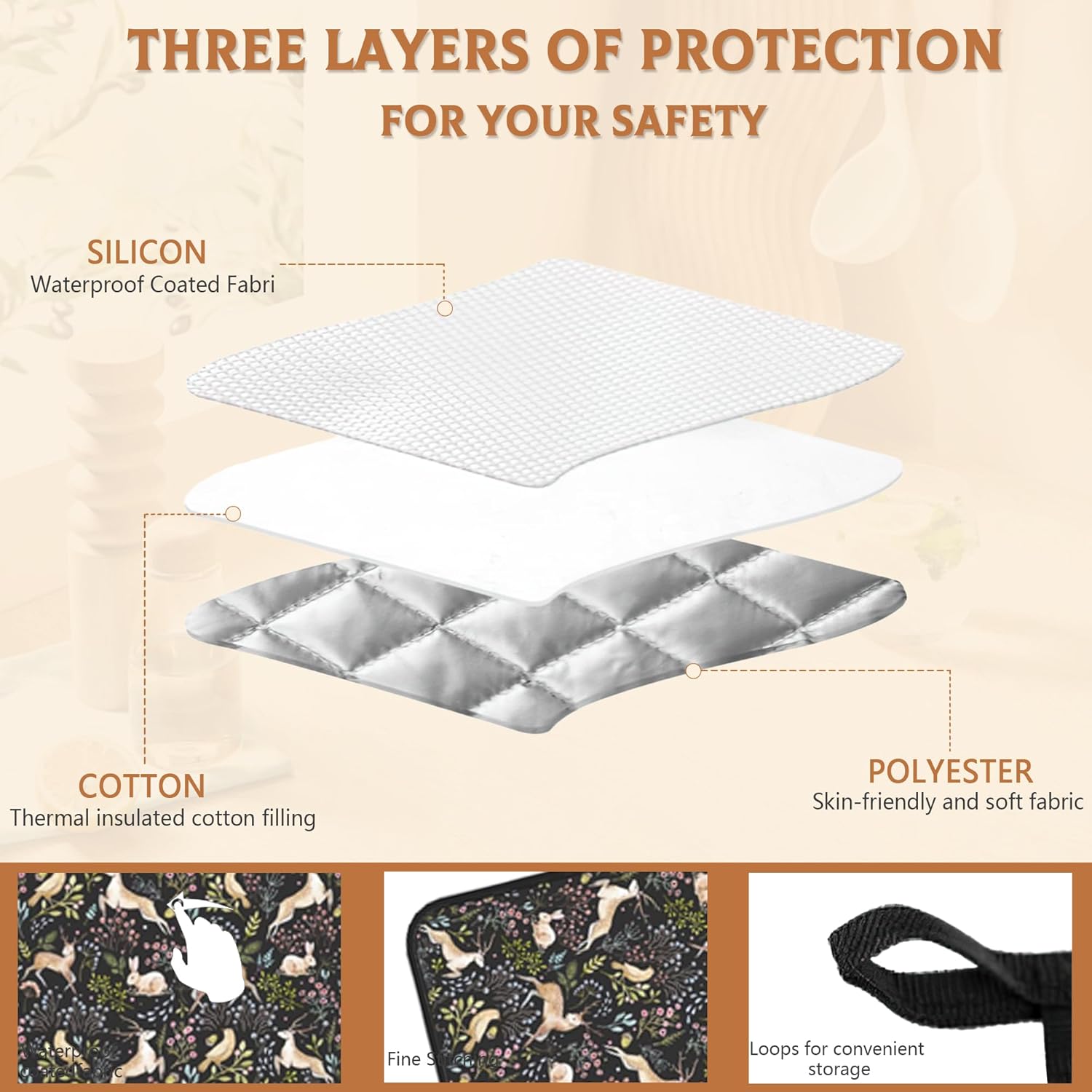 - Easy Storage: Soft, foldable, and with a convenient hanging loop, these pot holders are easy to store. Keep them in your kitchen drawer or hang them up for quick access while cooking.