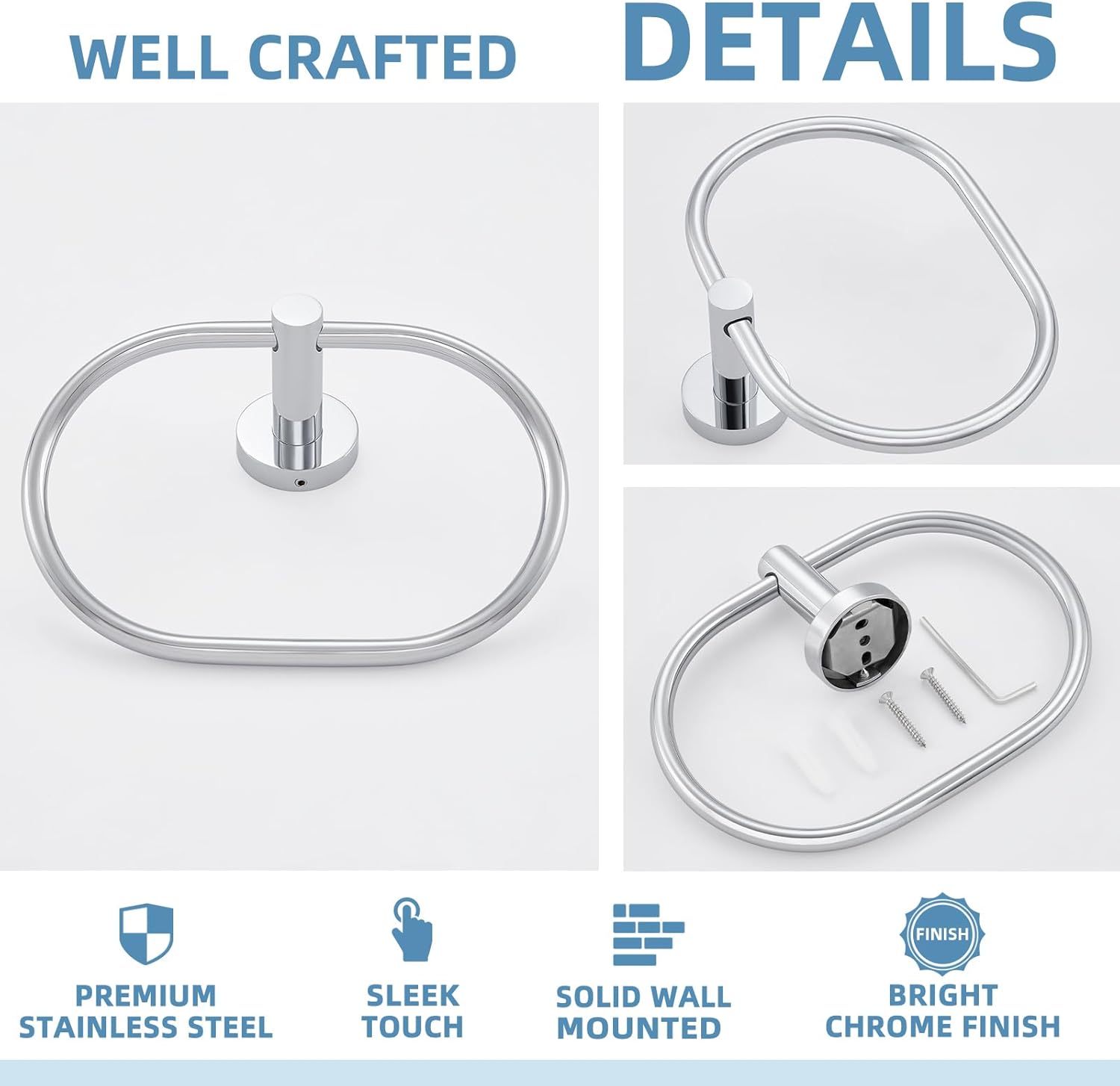 - WELL MADE DESIGN: solid stainless steel with modern oval style, no rough edges, chrome finish give sleek & shiny appearance. Closing design offer secure place to storage towels