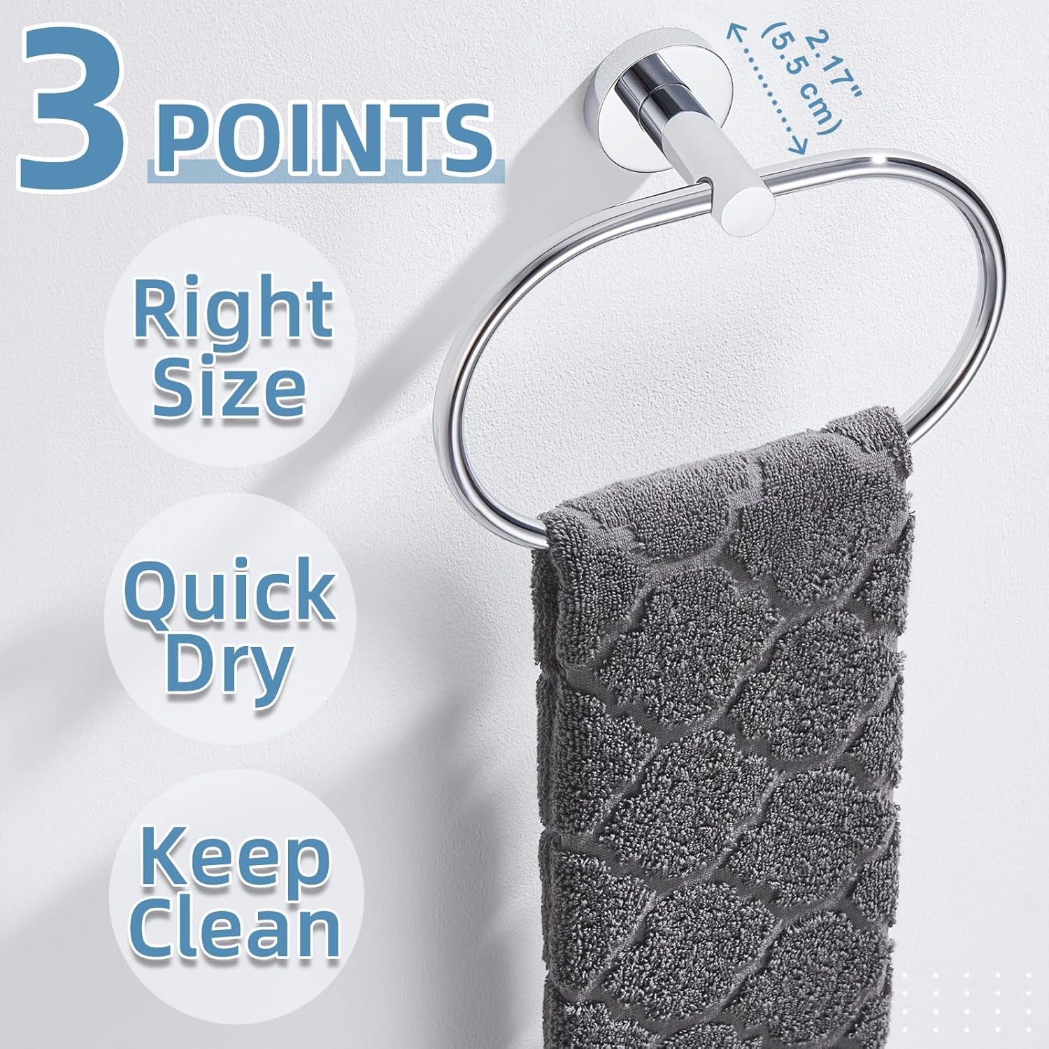 - SPACIOUS HANGING RING: 7”(177 mm) inner diameter provide ample space to accommodate towel, effortlessly hang and grip them