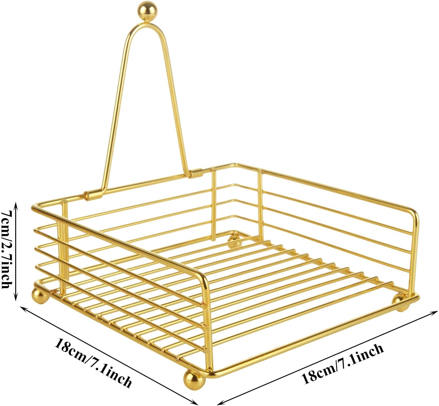 - Durable Metal Construction: Flat Napkin holders are made of quality metal with gold finish, won't tarnish and does not bend easily; Smooth surface will not puncture or tear paper napkins; Sturdy raised feet, prevent sliding