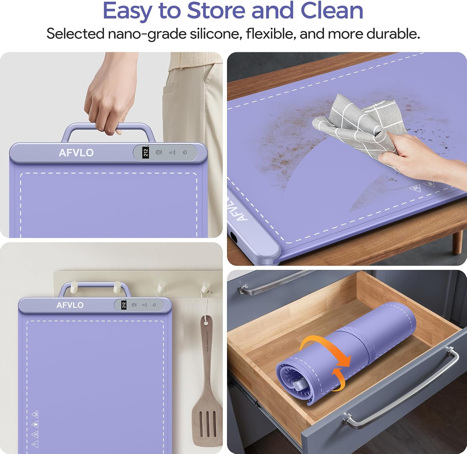 - š šØš„šššš„š & šš©ššš-šššÆš¢š§š : Warming tray features a graphene heating film, known for its rapid heat conduction, long lifespan, flexibility, and enhanced safety. This makes it suitable for various high-temperature utensils, ensuring more even and efficient heat distribution. Furthermore, this roll-up thermal pad boasts a portable design, allowing for easy rolling and space-saving storage when not in use.