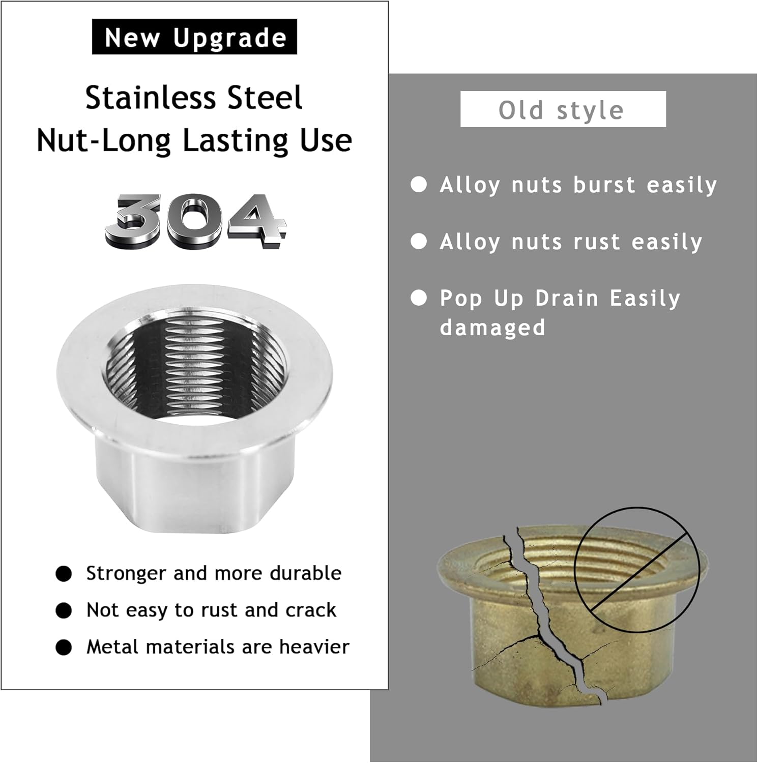 - Stainless Steel Nut and Small Cap: Rackickyer bathroom sink drain is with stainless steel nut, that will not rust, long lasting use. With its user-friendly design and included small cap, this pop up drain assembly is easy to install without any hassle