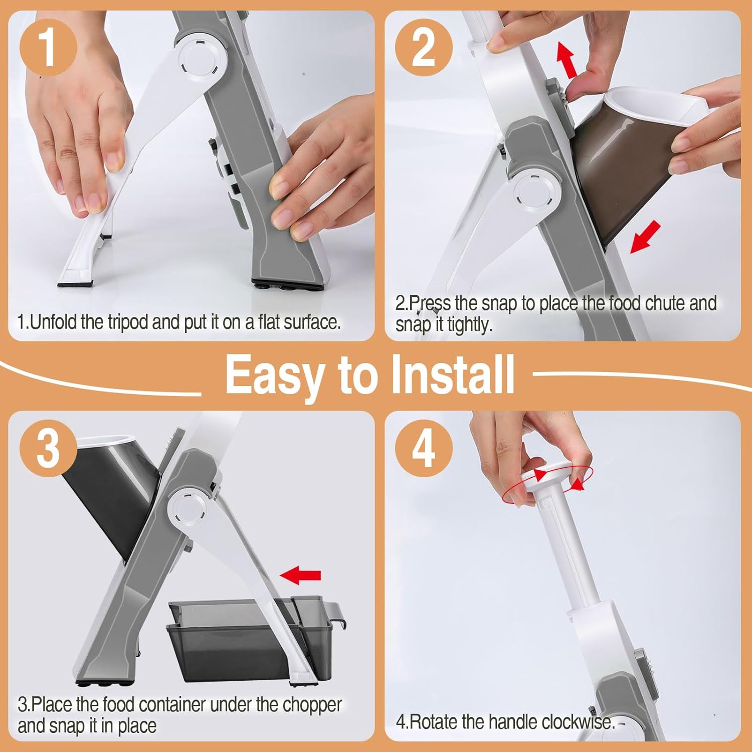 - QUALITY SERVICE: This mandoline slicer is safe, easy to assemble use and clean storage, it is the perfect kitchen chopping artifact! Please read the included instructions carefully before use. If you have any questions or problems with the vegetable slicer, please message the seller through Amazon and we will reply within 24 hours.