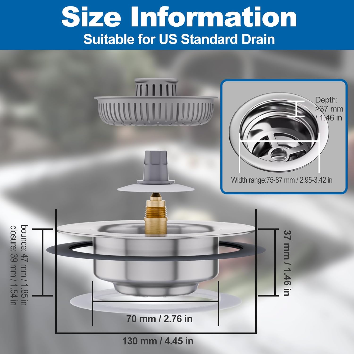 - 【Universal Fit for Most Kitchen Sinks – Easy Installation】 Compatible with sinks 2.83”-3.38” in diameter and 1.7”+ deep. No tools or plumbing skills required – just place it in the drain!