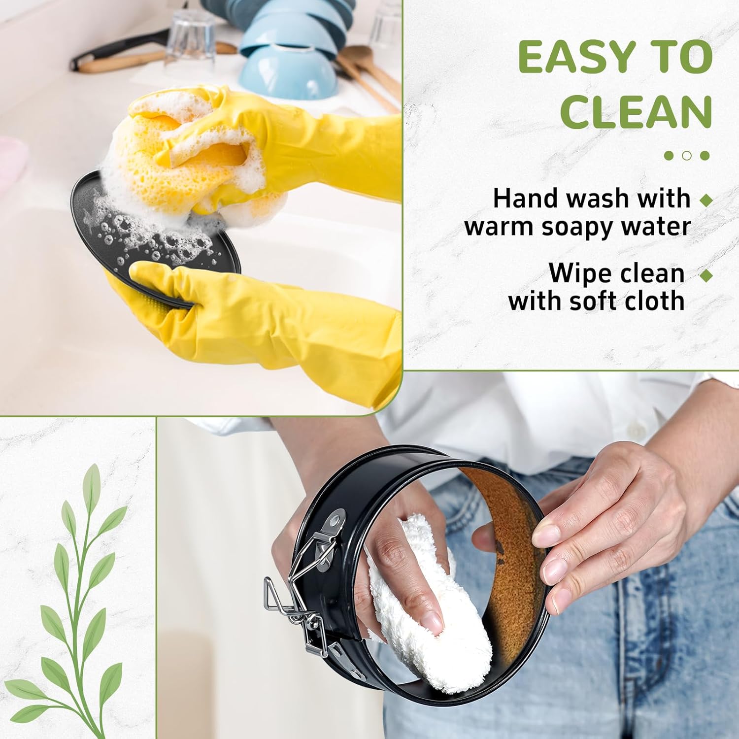 - Easy to Clean: The premium non-stick coating can reduce the absorption of grease in the pan while making cleaning a breeze. To protect the non-stick coating, hand wash only is recommended when cleaning the round spring form cake pans