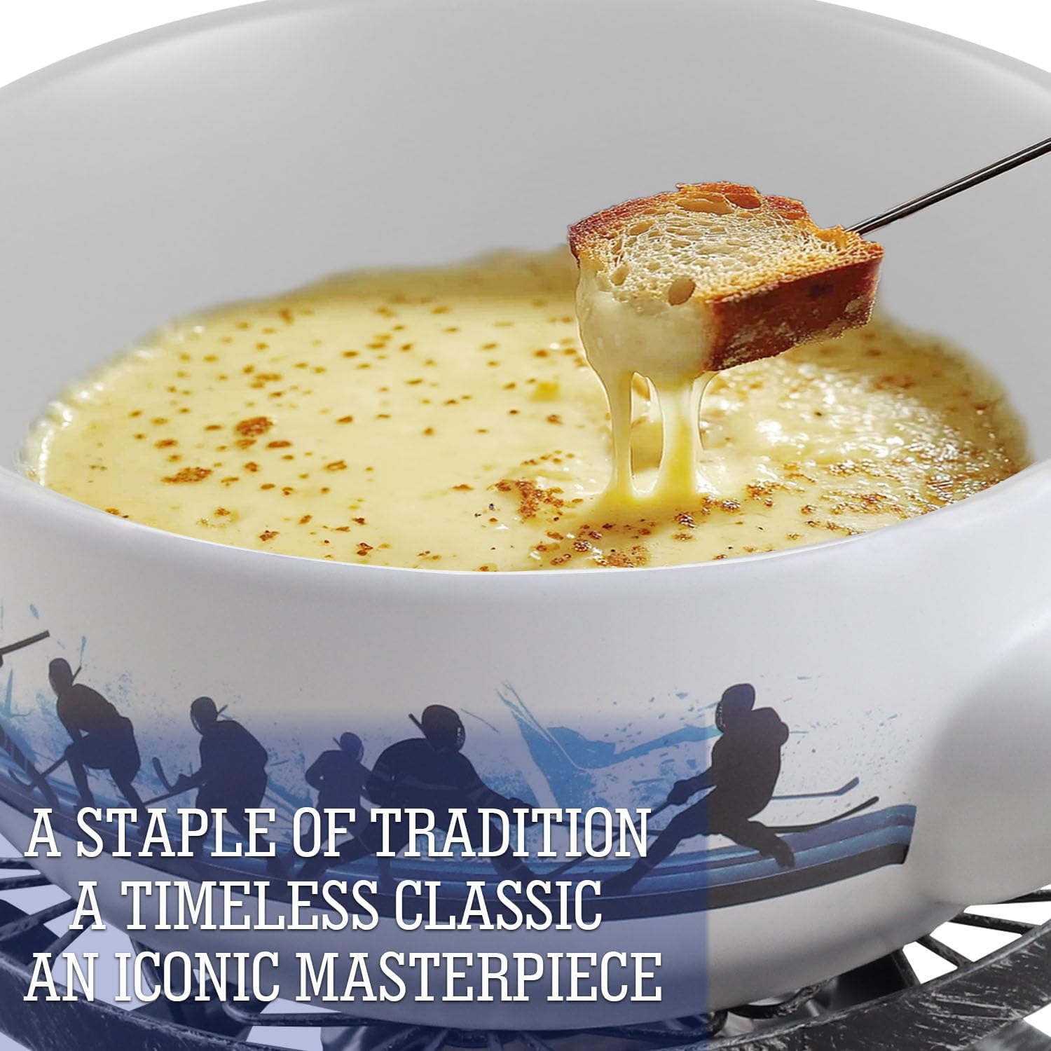 Artestia Swiss Fondue Set for Party - 2L Large Capacity Cheese Fondue Pot Melting Chocolate, Ceramic Fondue Pot, 6 Fondue Forks, Christmas, Wedding Gifts (Icebound Eagles)