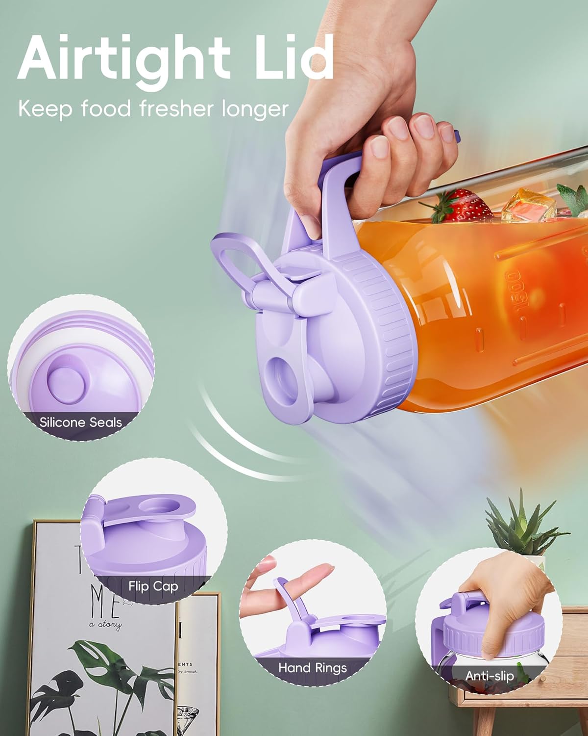 64oz Glass Mason Jar Pitcher with Lid Wide Mouth, 2 Quart Leakproof Glass Water Jug for Juice, Sun Iced Tea, Cold Brew Coffee, Milk Storage, Purple