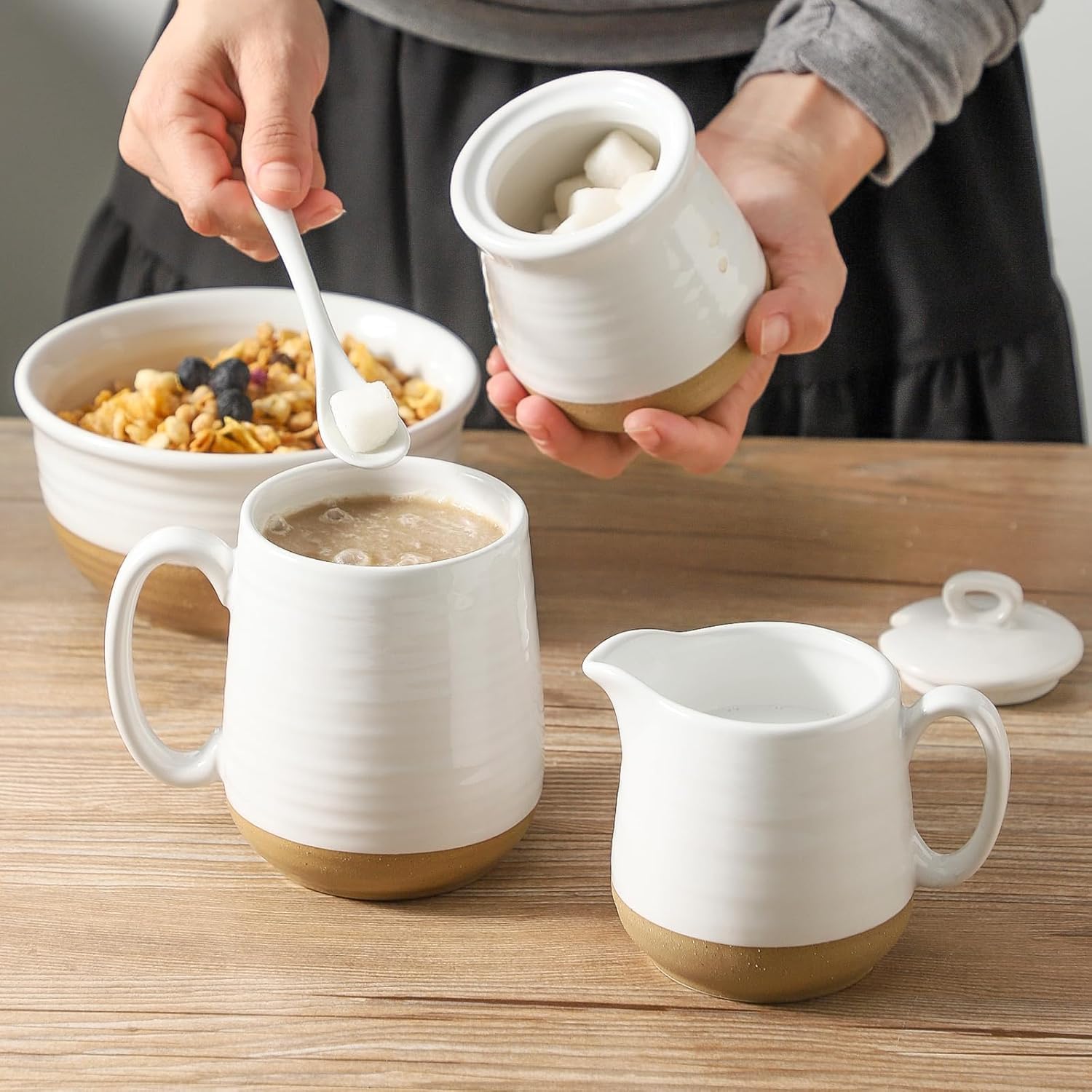 - Durable & Premium Ceramic Construction: Made from high-quality ceramic, this sugar and creamer set is built to last, offering long-term durability and effortless cleaning. Its smooth, non-porous surface makes it resistant to stains and odors, easily washable by hand or in the dishwasher.