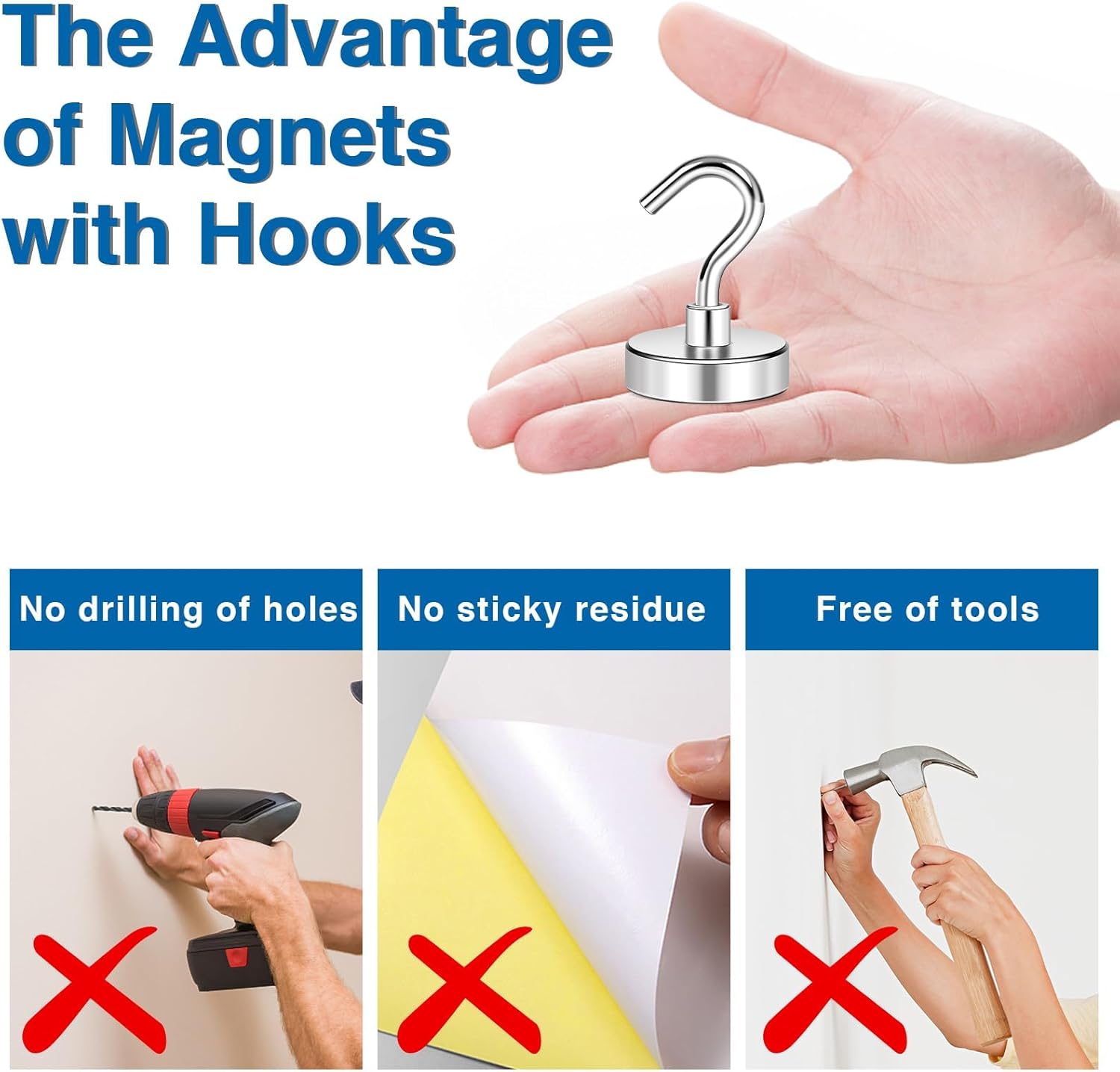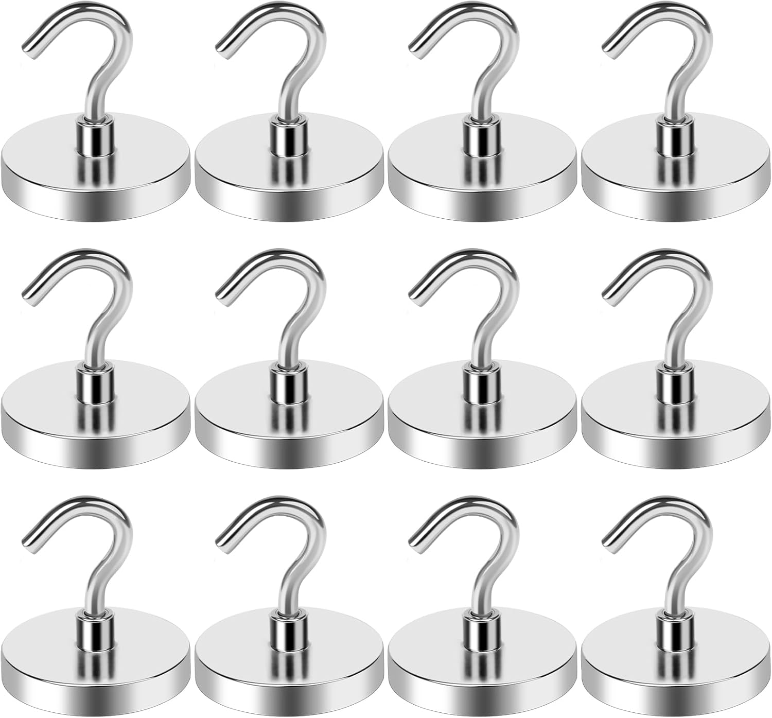 LOVIMAG Magnetic Hooks for Cruise Cabins, 110lbs Magnetic Hooks for Classroom, Strong Magnets with Hooks for Hanging, Neodymium Magnet Hooks for Fridge, Ceiling, Locker, Camper, Travel-12 Pcs