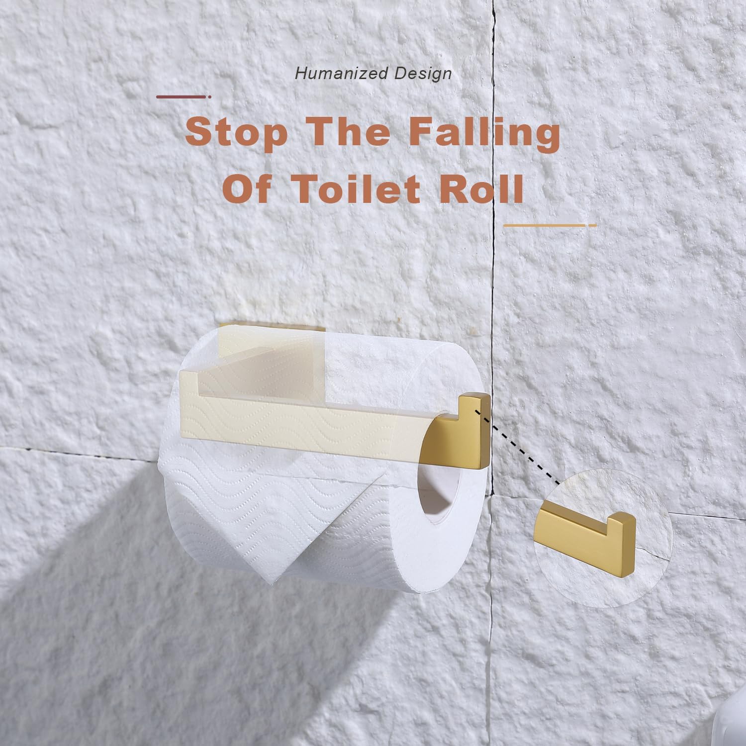 TASTOS Toilet Paper Holder Brushed Gold, Toilet Tissue Roll Holders Dispenser and Hangers Wall Mounted for Bathroom & Kitchen, Stainless Steel Modern Square Style