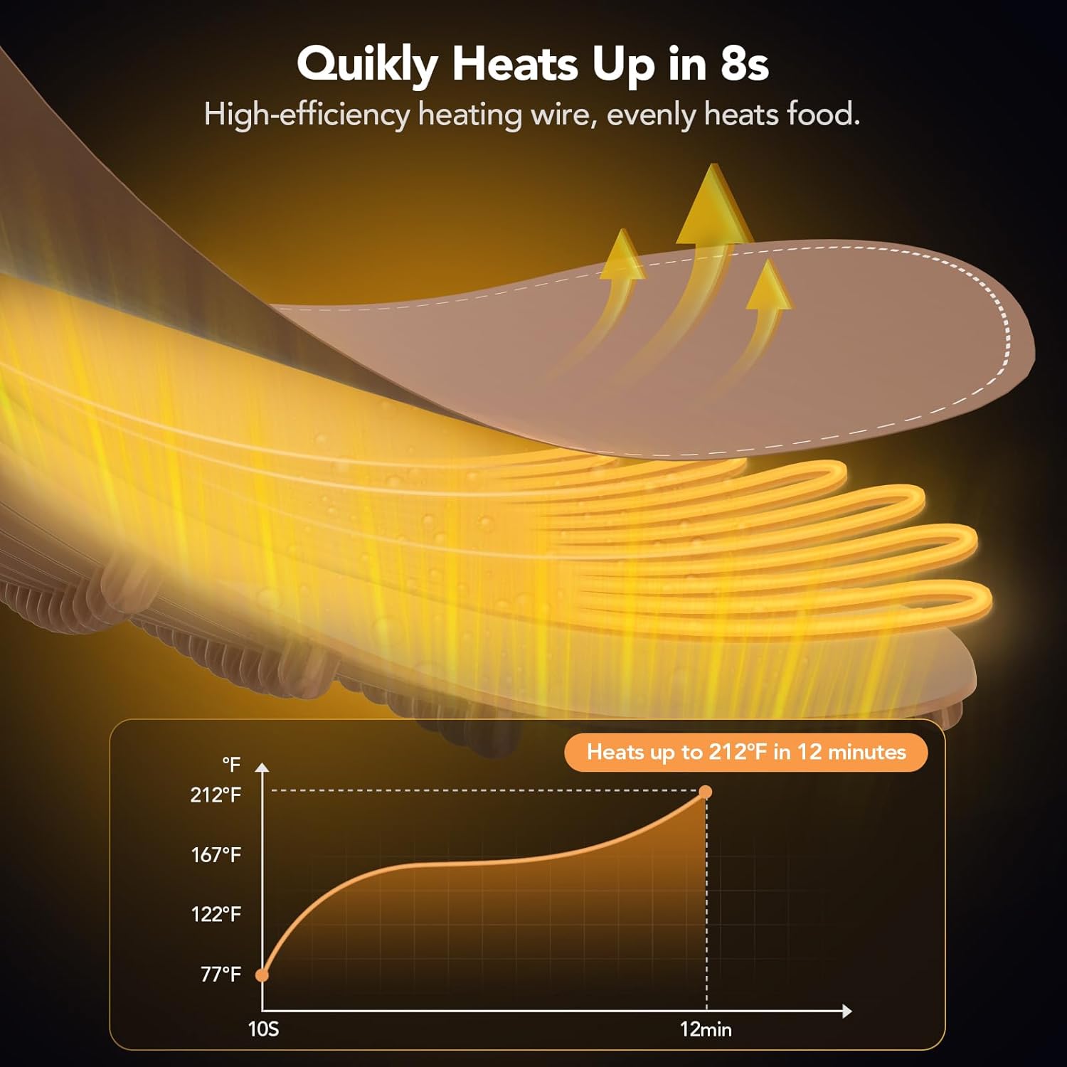 - [Customized Comfort] Dial in the perfect temperature with our 9-level temperature-controlled food warming mat. The 12-hour auto shut-off feature ensures convenience and caters to a variety of food preferences for a smooth dining experience