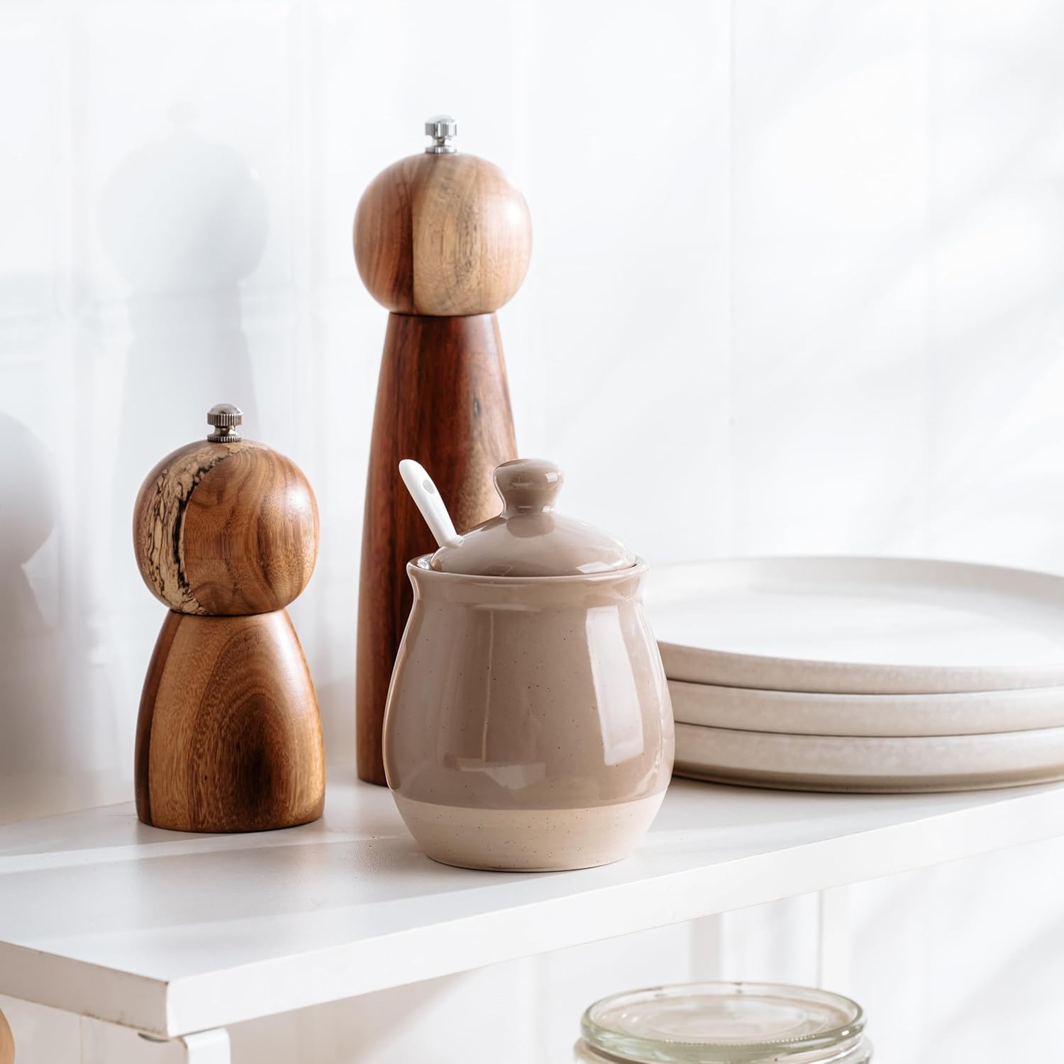 - Sugar Bowl with Lid and Spoon: This 10-ounce sugar bowl (2.7" diameter x 4.7" height) is perfect for daily use. Ideal for storing granulated sugar, sugar cubes, sweeteners, salt, spices, or even coffee beans.
