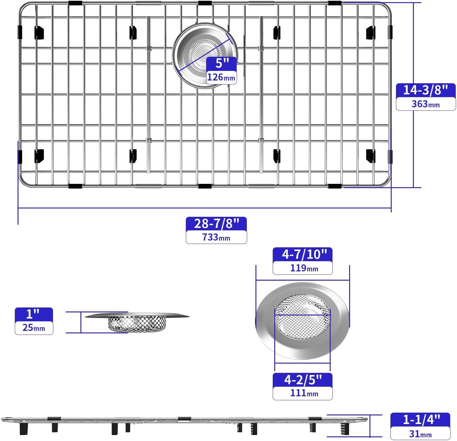 Sink Protectors for Kitchen Sink, Sink Grate Grid for Bottom of Sink, Metal Sink Rack, Bottom Basin Rack, Stainless Steel, 28-7/8" x 14-3/8"