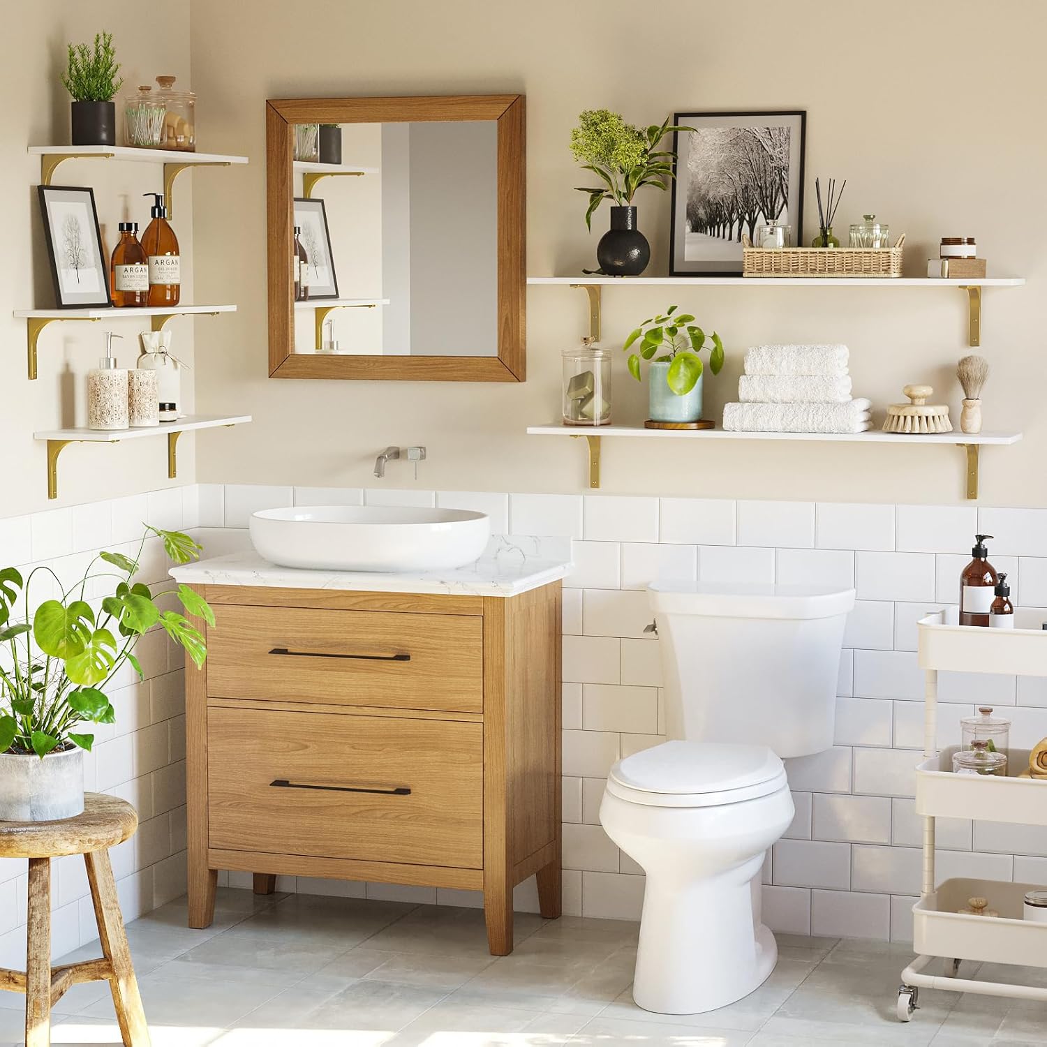 - 【Stunning Home Decor】L-shaped iron brackets bring super stability and elegant simplicity, never out of date. It combines white and gold design, minimalist metal lines, making your home full of modernity and elegance. Play your creativity to build an eye-catching area by freely arranging these shelves