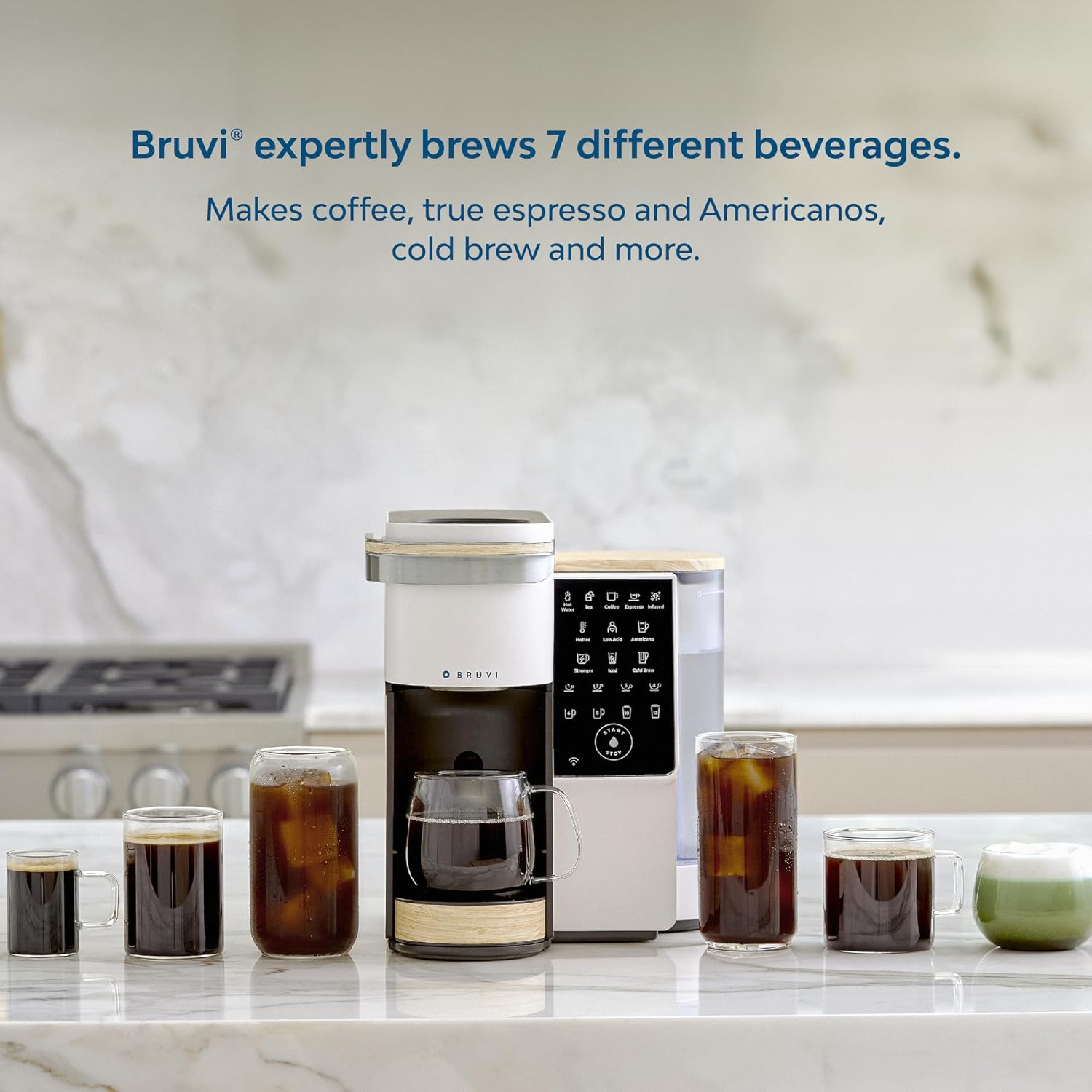 - SEVEN DIFFERENT BEVERAGES: Bruvi brews coffee, true high pressure espresso and Americanos, cold brew, iced coffee, infused coffee and tea.