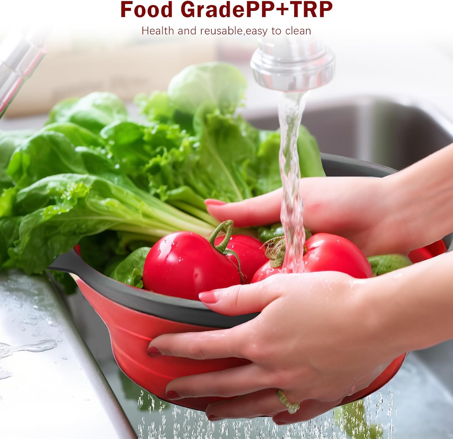 - Superior Quality: Our collapsible colander set is made of TPE+PP material, which is more durable and long-lasting than TPR. It's also BPA-free and reusable, making it a healthier and more eco-friendly choice.